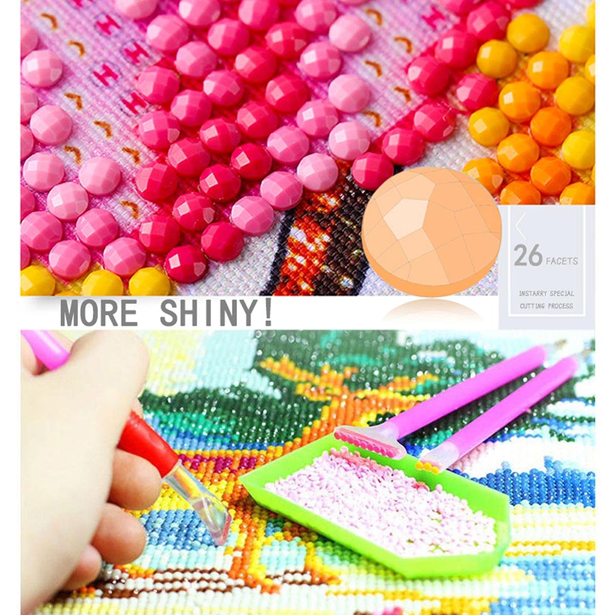 - 【Sparkling! 26 Facets】 Instarry chooses round diamond that cost more than square diamond, and uses a unique process to cut more facets on the diamond. Compared with other diamond paintings, it is more shining and beautiful