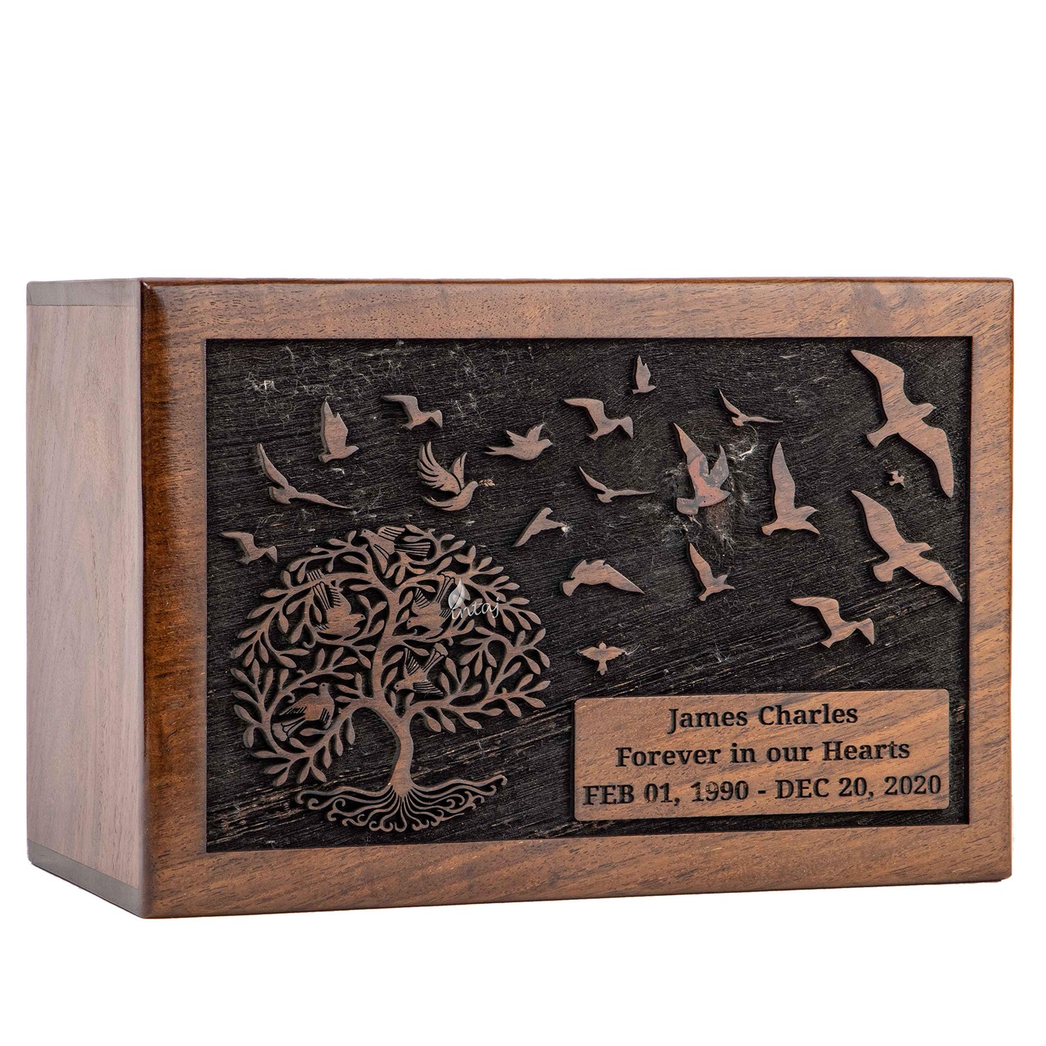 INTAJ Cremation Urn for Human Ashes Adult Male Female - Tree of Life Wooden Box Urn for Ashes - Handmade Decorative Funeral Urn (Customised Tree