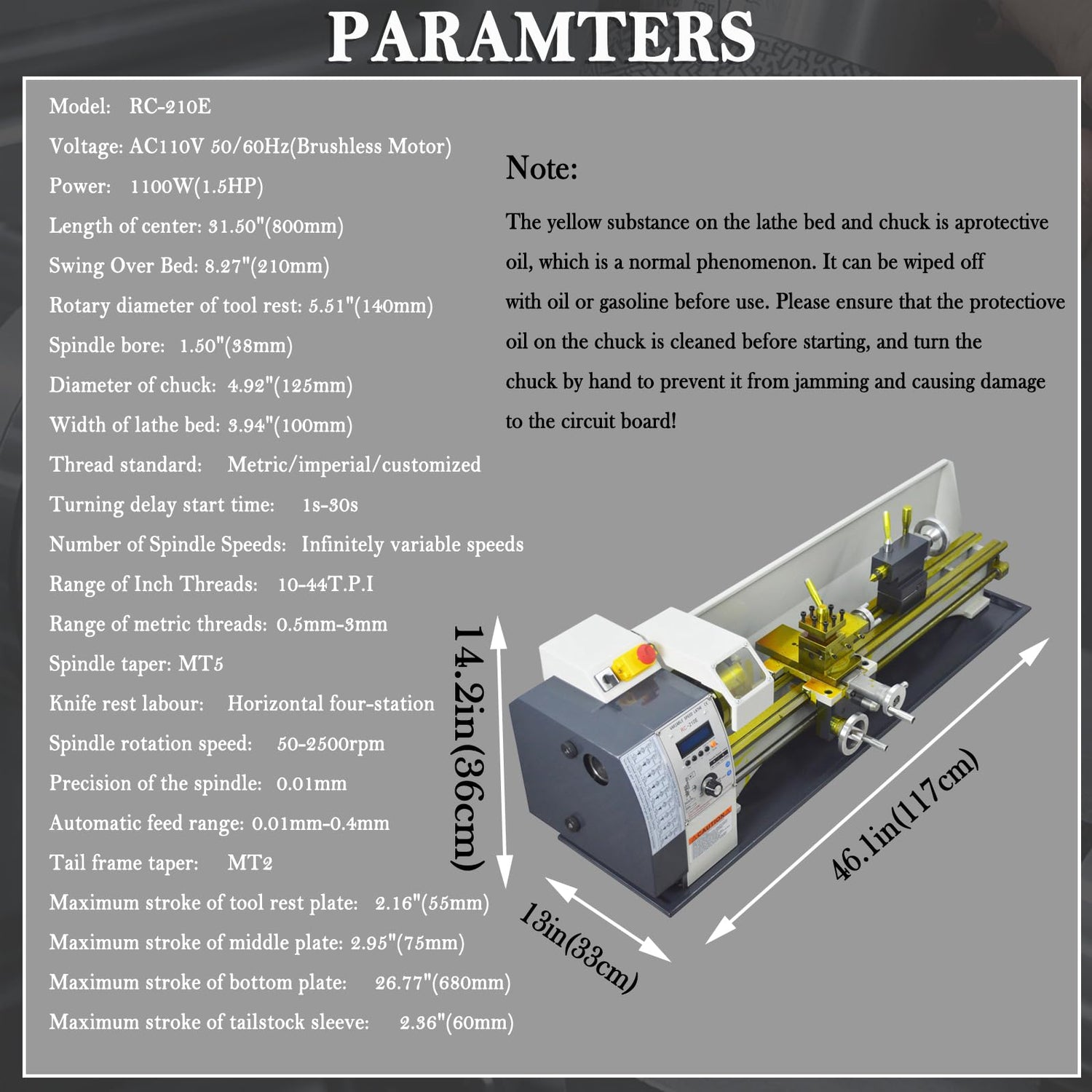 - 1100W BRUSHLESS MOTOR: With a robust 1100 W brushless motor, the lathe delivers high-efficiency and quiet operation.This powerhouse brushless motor not only enhances the processing experience but also minimizes maintenance requirements, providing users with a reliable and long-lasting machine