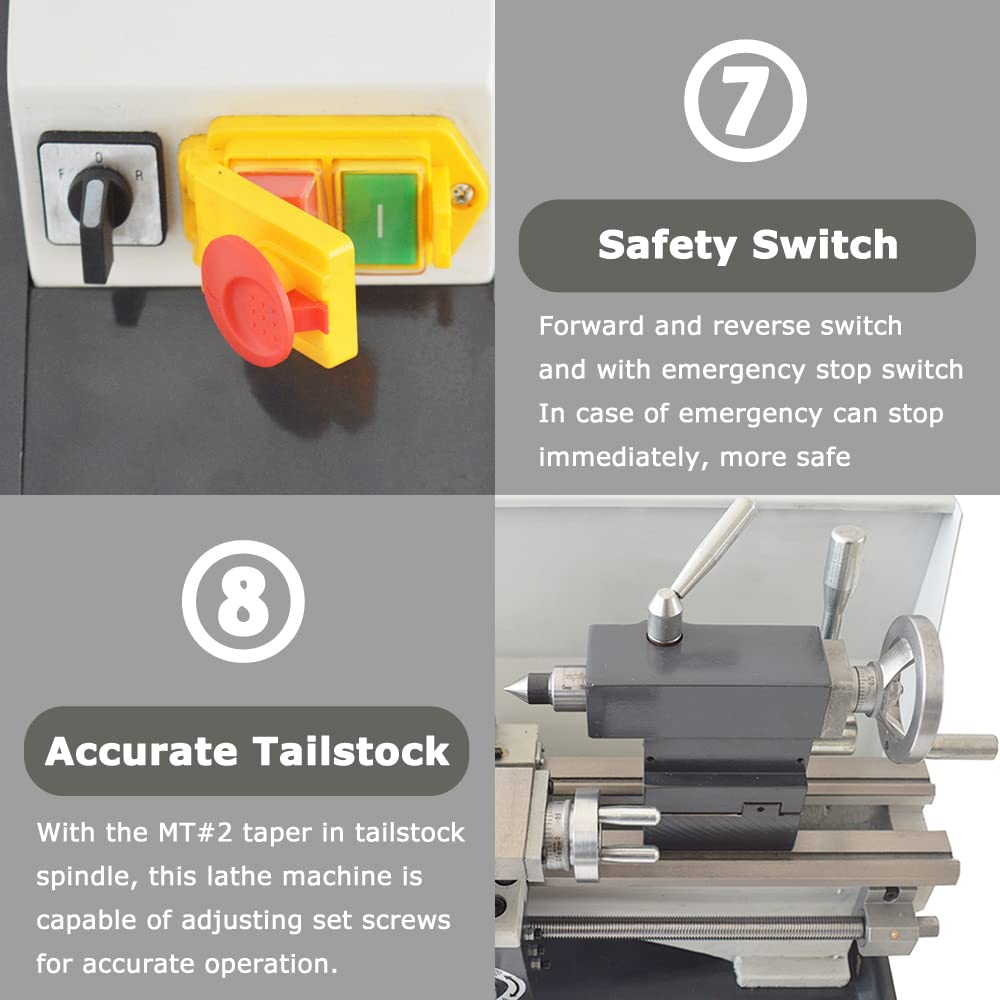 - Robust Construction: The miniature lathe features a high-quality cast iron bed that has undergone high-frequency quenching and precision grinding, ensuring exceptional stability and durability for precise machining