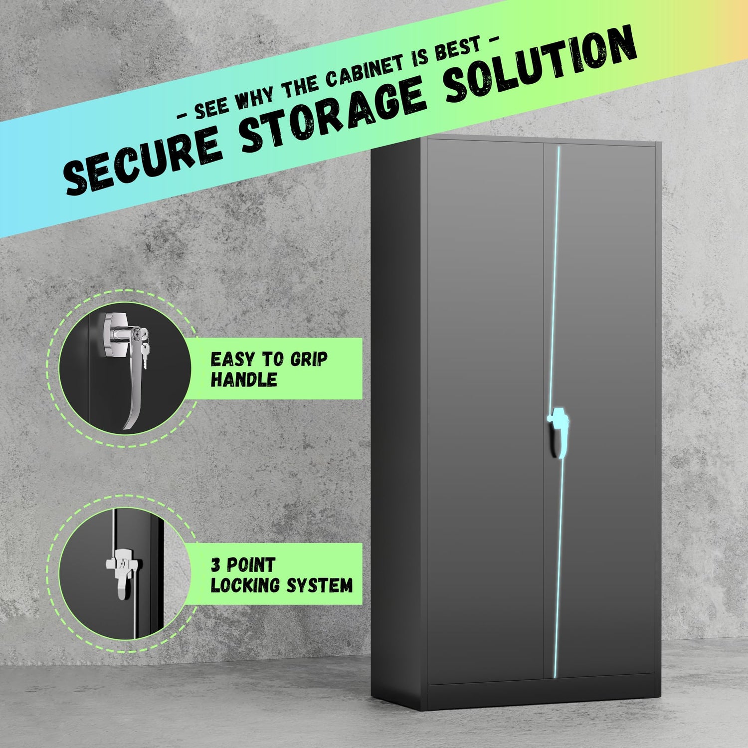 INTEGREAT Metal Storage Cabinet,72" Black Office Metal Cabinet with Locking Doors and Adjustable Shelves,Steel Locking Cabinets for Office,Home,Garage,Gym,School