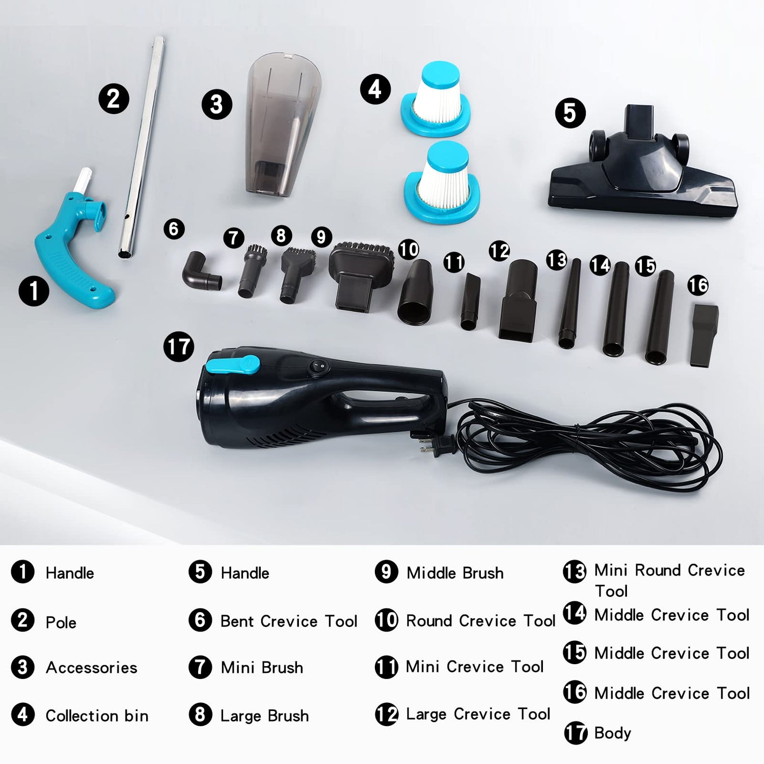 - 【16.4ft Extra Long Cord】: 16.4 ft power cable can make small vacuum have a broad range of use. You don' need to change the plug-in position frequently as the cleaning place changed. It's much more convenient when compared to standard corded vacuum cleaners. Let you experience powerful suction as well as get rid of runtime constraints.