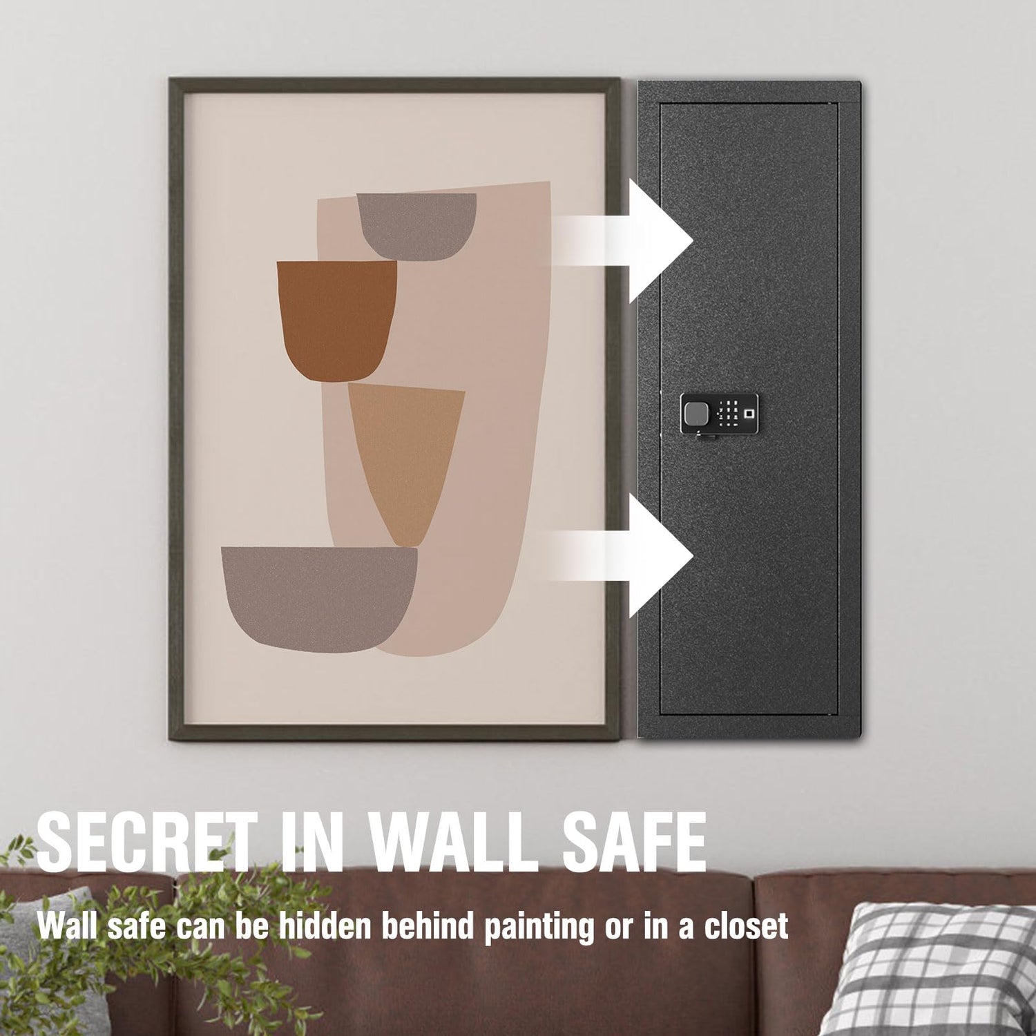 - 【ANTI-THEFT ALARM DESIGN】All illegal access is denied! Our hidden wall safe provides security smart alarm system, if you enter the wrong password 3 times in a row, the system will activate warning beep for 60 seconds. Entering correct user code, press "#" to confirm or power off, the alarm will stop.