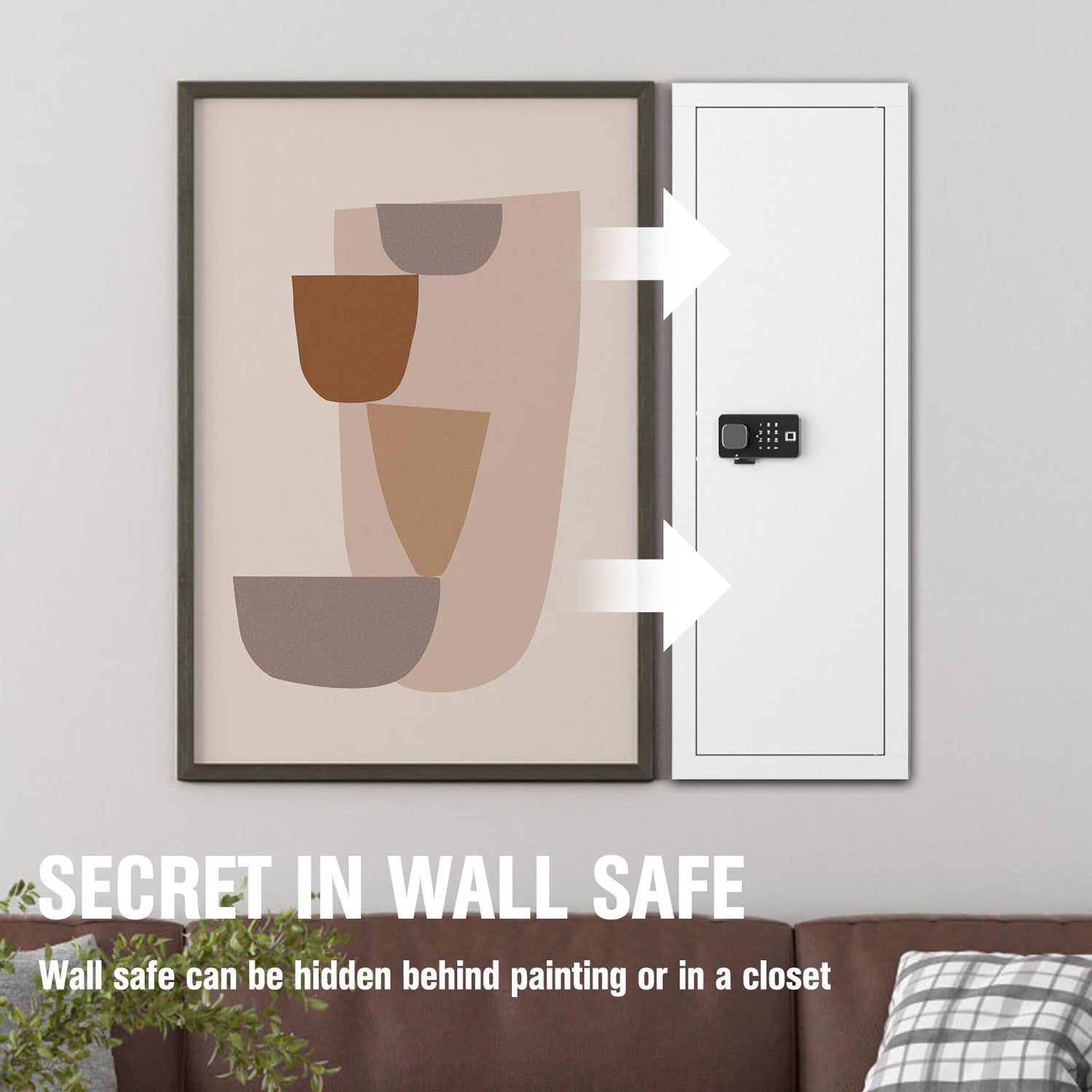 - 【ANTI-THEFT ALARM DESIGN】All illegal access is denied! Our hidden wall safe provides security smart alarm system, if you enter the wrong password 3 times in a row, the system will activate warning beep for 60 seconds. Entering correct user code, press "#" to confirm or power off, the alarm will stop.