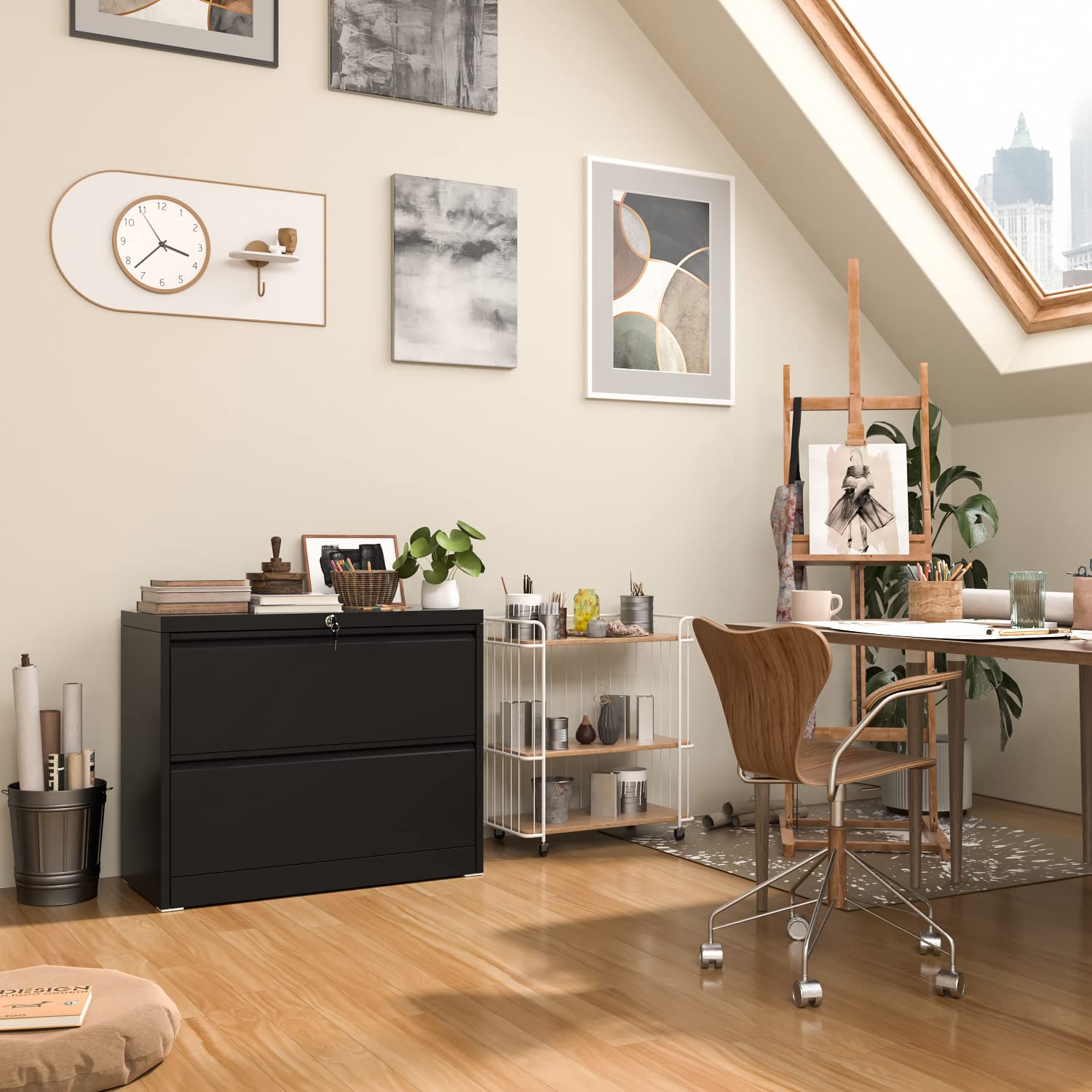 - 【Higher Level Security & Anti-tilt Mechanism】: This lateral file cabinet 2 drawer has one lock which locks all two drawers and is equipped with two keys. it can help you keep your valuables and documents safe. When one drawer of office lateral file cabinet has been opened, the interlocking drawer system prevents the other drawer from opening, which prevents tipping.