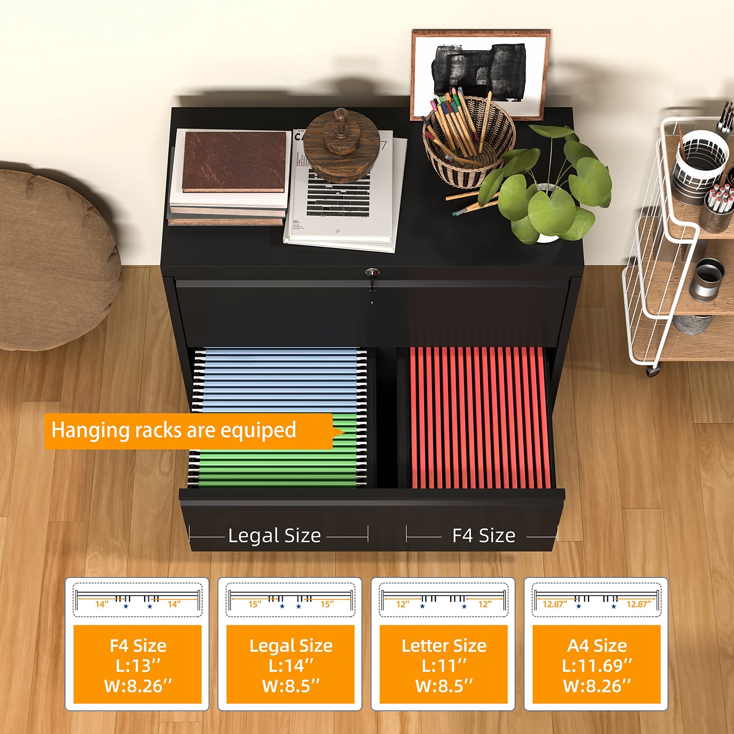 INTERGREAT Lateral File Cabinet 2 Drawer Black, Metal 2 Drawer Filing Cabinet with Lock for Home Office, Locking File Cabinet for Letter/Legal/F4/A4 Size Hanging Files - 36" W