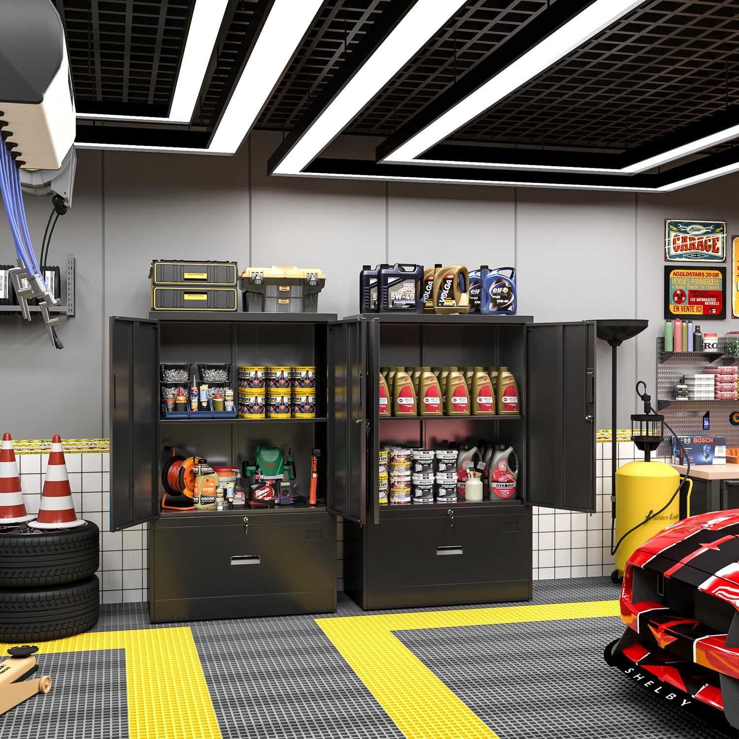 INTERGREAT Metal Storage Cabinet with Drawer,52" H*32" W*16" D File Cabinets,Steel Locking Storage Cabinet with Doors and Shelves for Home,Office,Garage,School,Fit A4/Letter/Legal File (Black)
