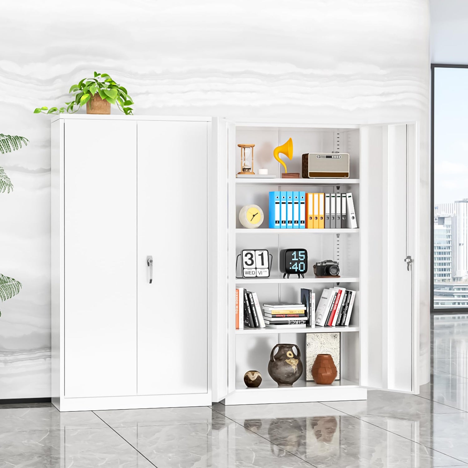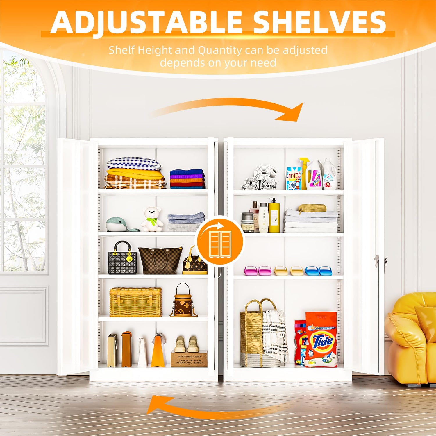 - 【High Security】: Tall steel storage cabinet with 2 door and 4 adjustable shelves to accommodate items of all sizes.The locking file cabinet with 2 Locking keys and 3-pointed locking system can highly secure your belongings.Whether you want to store office files, garage tools, or other large and heavy items, it's no problem.