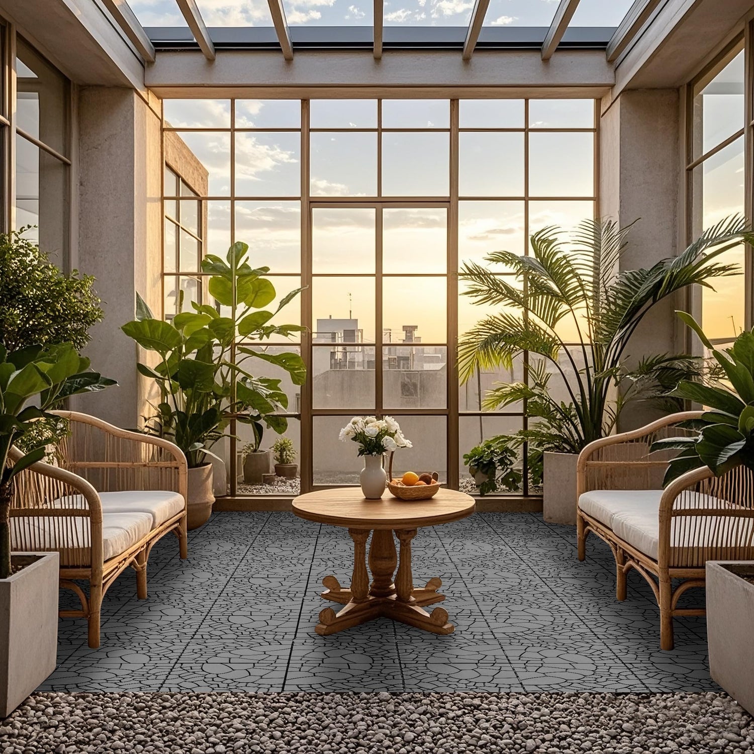 - 【VERSATILE & CUSTOMIZABLE DESIGN】These Plastic Interlocking Deck Tiles offer unparalleled versatility, allowing you to transform any space into a stylish oasis. They can be laid over various surfaces, including concrete, wood, or even grass, providing a smooth, level finish on uneven ground.