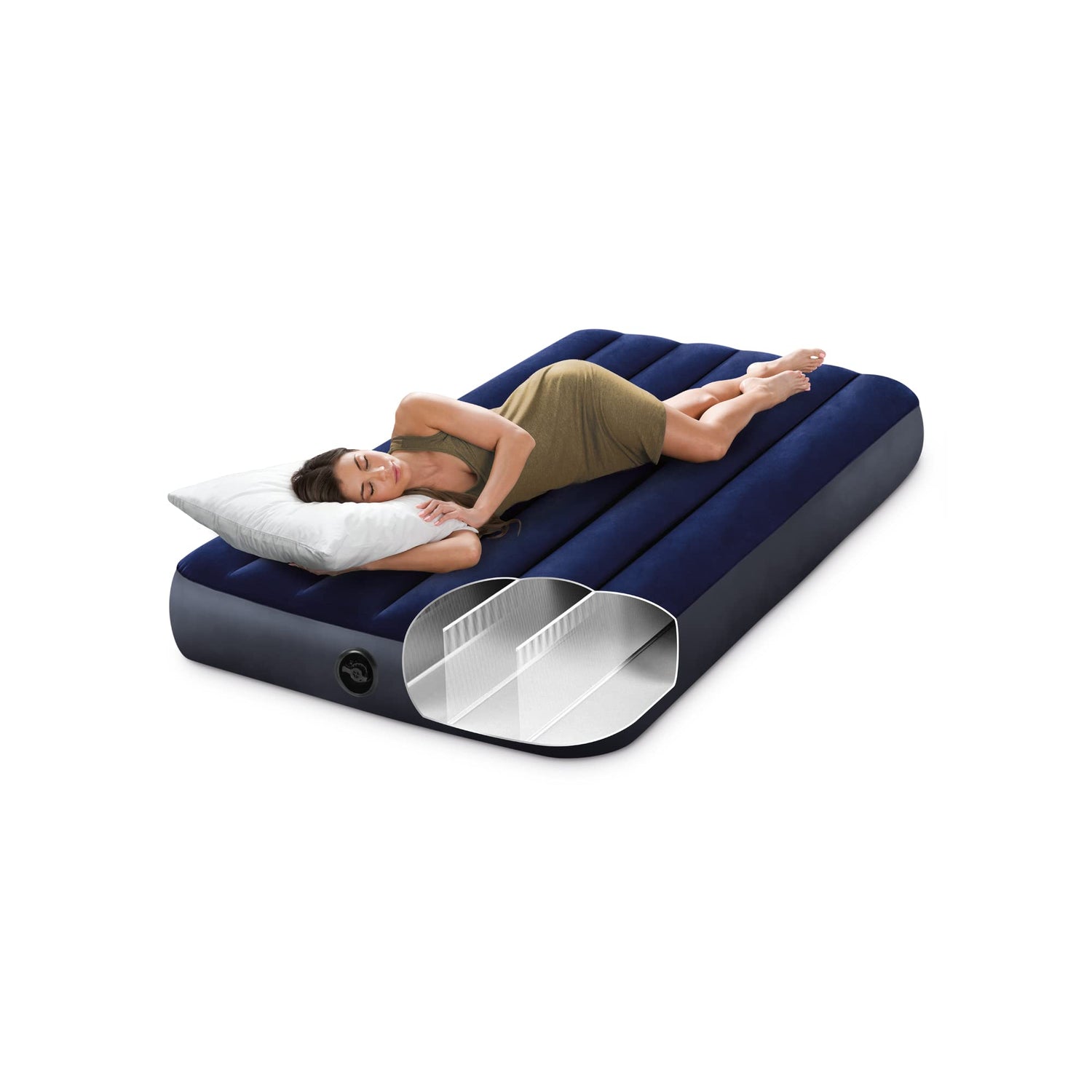 Intex 64757E Dura-Beam Standard Downy Air Mattress: Fiber-Tech - Twin Size - 10in Bed Height - 300lb Weight Capacity - Pump Sold Separately