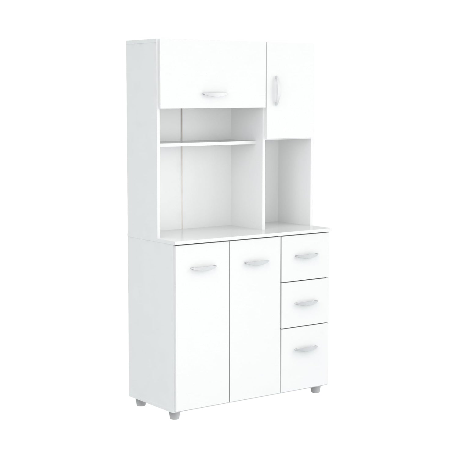 Inval, 71" H x 23.6" W x 17.1" D, White Kitchen Microwave Storage Cabinet with 3 Drawers, Kitchenette Standing Pantry