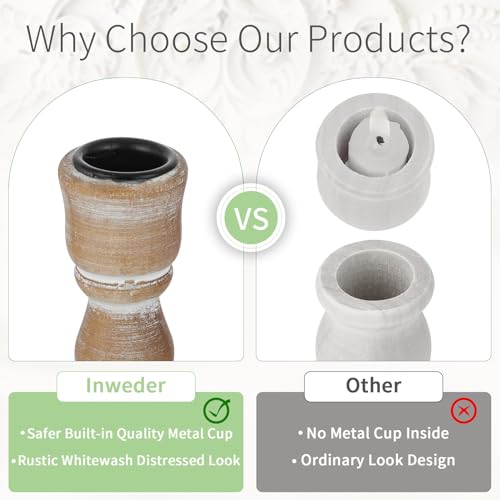 Inweder Candle Holders for Candlesticks, Wood Taper Candle Holders, Set of 2 Candle Holders for Table Centerpiece, Rustic Candle Holder, Farmhouse Candle Holders for Wedding, Home Decor, Event