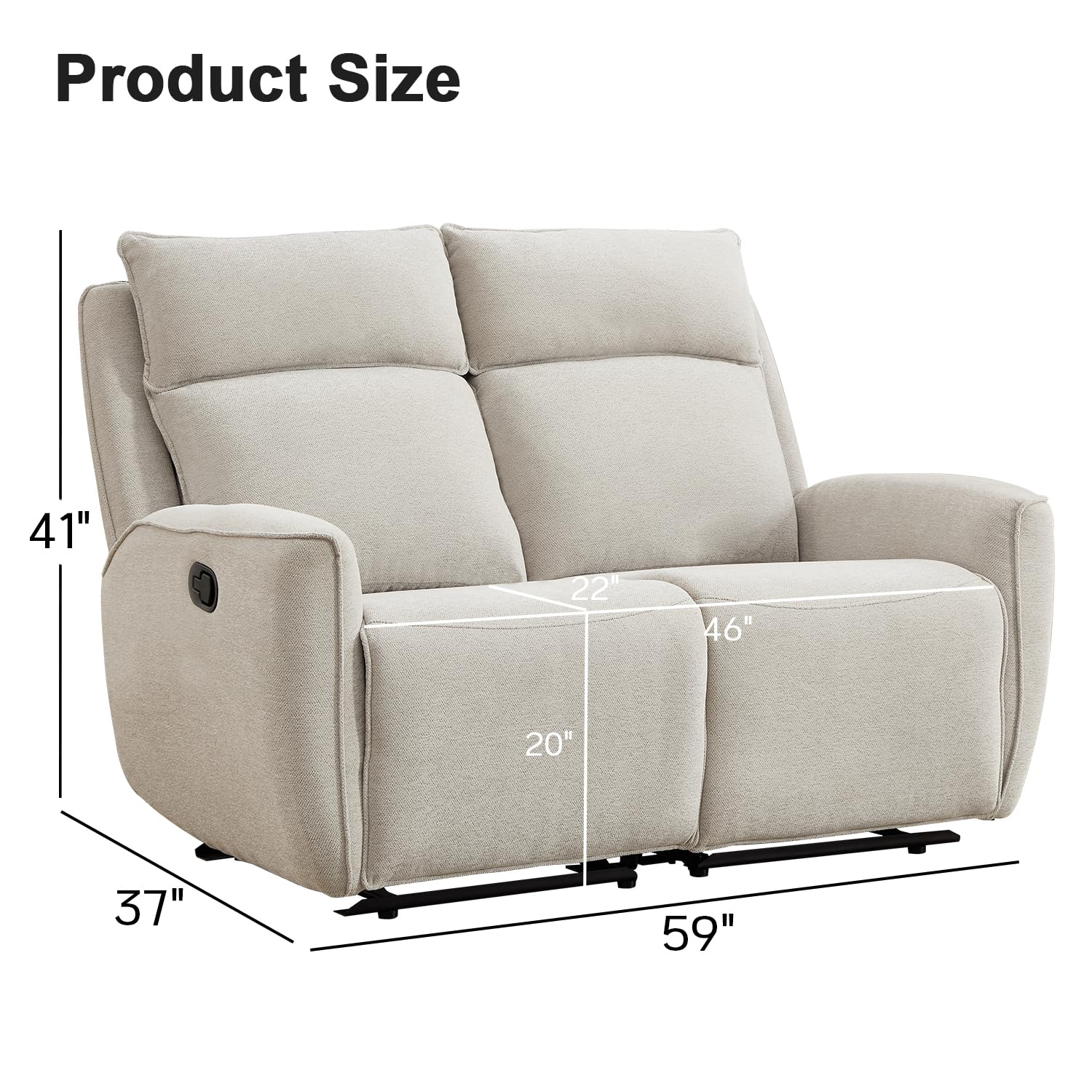 INZOY Manual Loveseat Recliner Sofa, Wall-Hugger 2 Seat Reclining Love Seat Couches, Chenille Fabric Reclinable Sofa Set, Double Seater Recliner Chair for Living Room, Office, Apartment, Beige