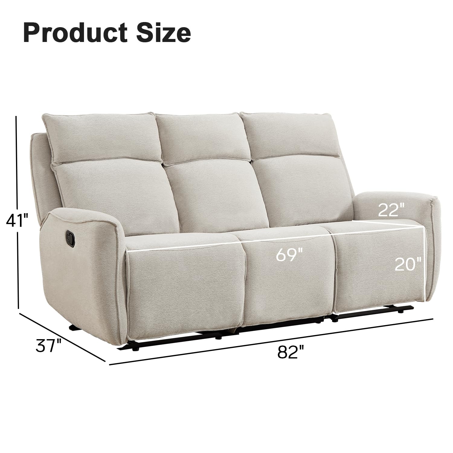 - Stable and durable frame-The recliner sofa boasts a stable and durable frame, constructed with solid wood and metal frame, ensuring longevity. It has endured 15,000 rigorous opening and closing tests to guarantee sufficient sturdiness. Thanks to its robust construction, this chair can support a maximum weight of 700 pounds.