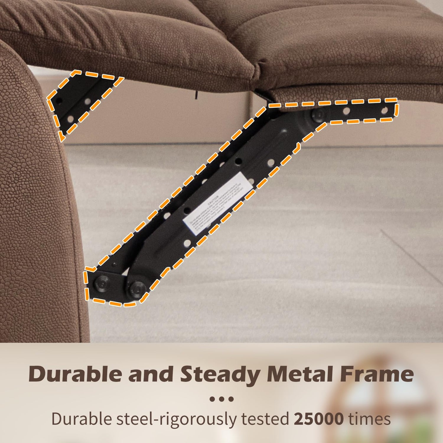 - Stable and Durable Frame - The recliner sofa boasts a stable and durable frame, constructed with solid wood and metal frame, ensuring longevity. It has endured 15,000 rigorous opening and closing tests to guarantee sufficient sturdiness. Thanks to its robust construction, this chair can support a maximum weight of 700 pounds.