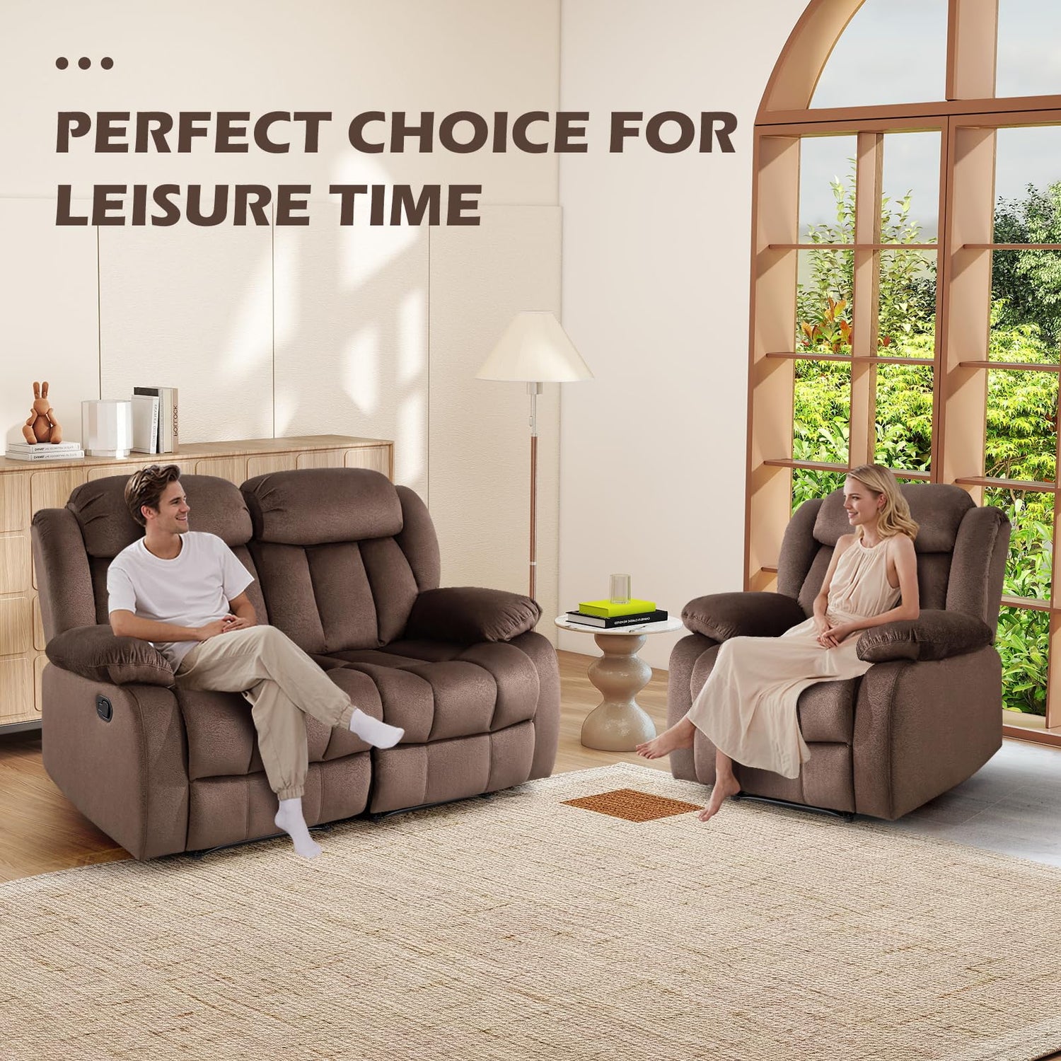 - Elegantly Designed Manual Reclining Sofa Set - Featuring generously overstuffed cushions and a tall, commanding backrest that exude timeless charm—perfectly blending classic aesthetics with contemporary home décor. The plush padding, superior lumbar support, and fully upholstered seating ensure a luxurious and relaxing experience, making every moment of rest truly enjoyable.