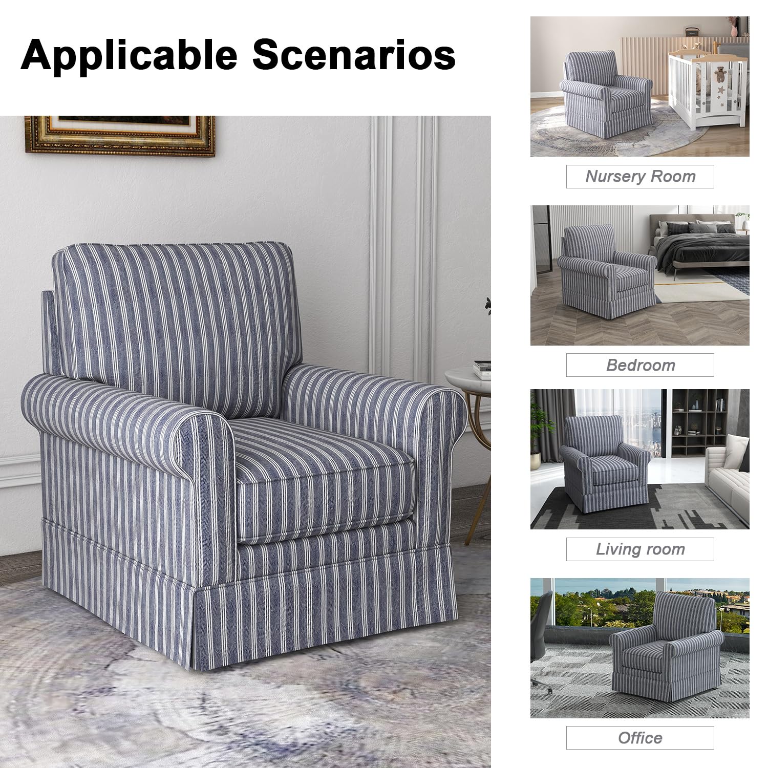 INZOY Mid Century Modern Linen Swivel Chair, Comfortable Barrel Reading Chair for Living Room, Bedroom, Small Spaces - Blue Stripe