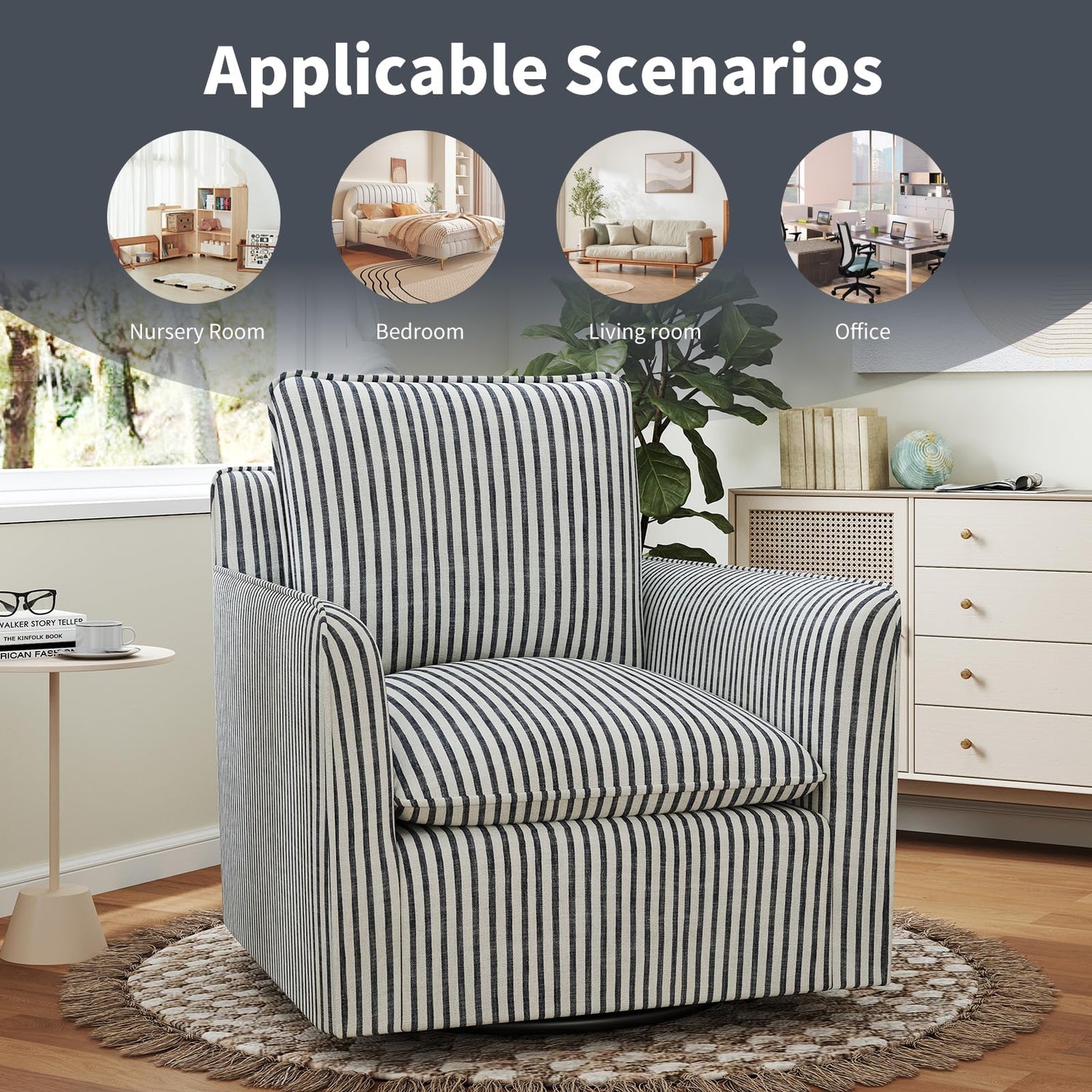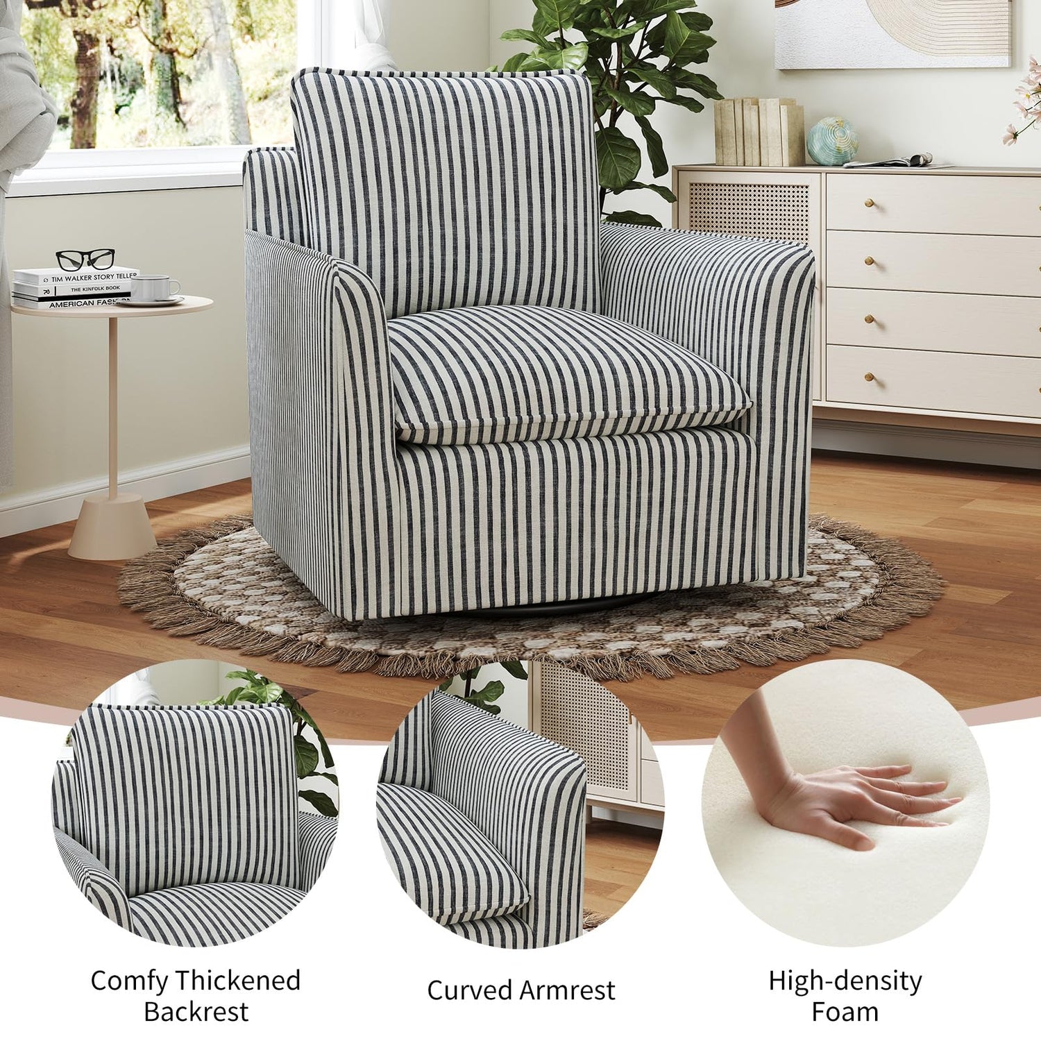 INZOY Swivel Accent Chair, Upholstered Square Chair, Swivel Barrel Reading Chair with Thick Padded Backrest Cushion, Arm Chair for Living Room Bedroom Small Spaces, Blue Stripe