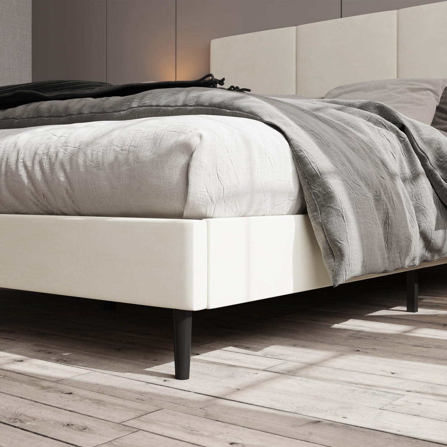 - Sophisticated Design: Elevate your bedroom with our full bed frame with headboard featuring elegant vertical channel tufting. The headboard adds a stylish touch to your space, making it an excellent choice for those seeking a full size bed frame that stands out.