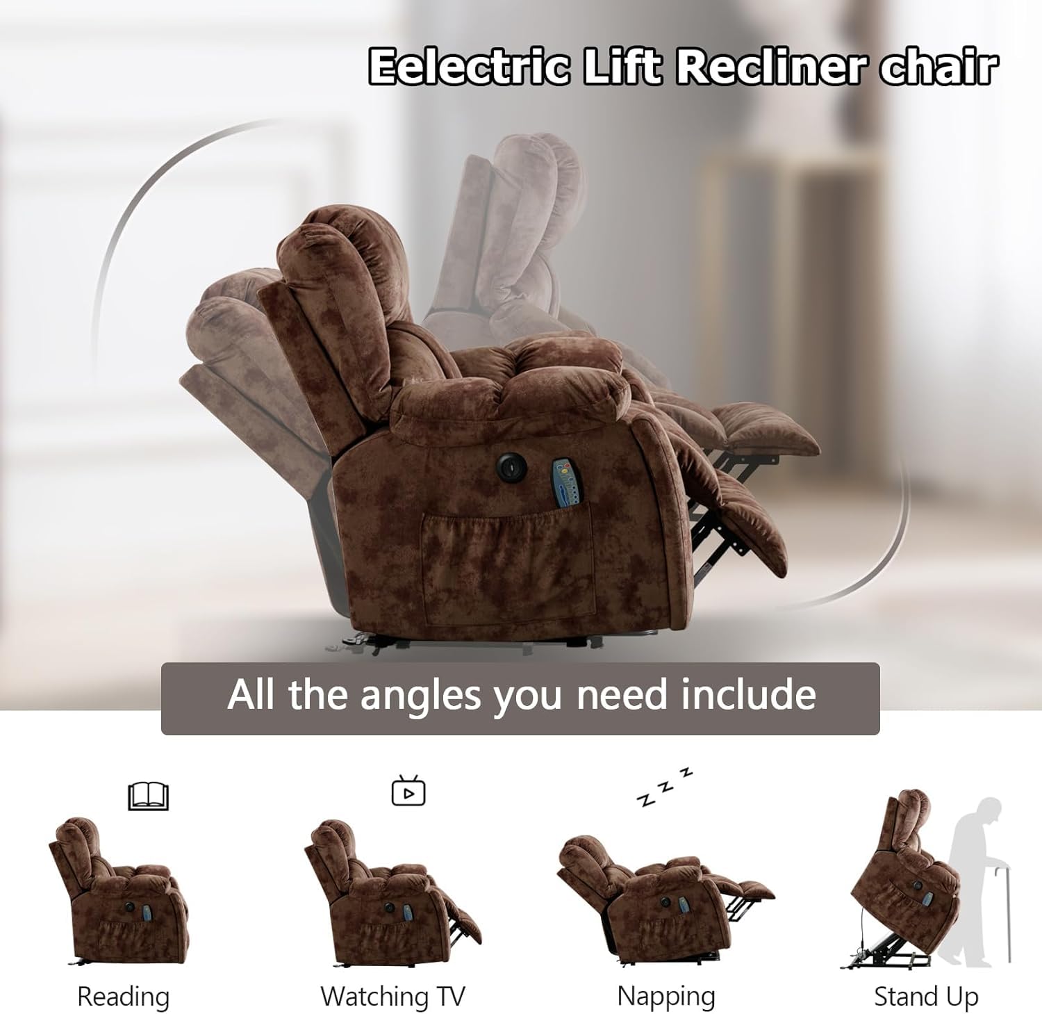 IOMOR Large Power Lift Recliner with Massage and Heat for Elderly, Electric Reclining Chair with USB Port, 2 Hidden Cup Holders, Side Pockets (1, Brown)