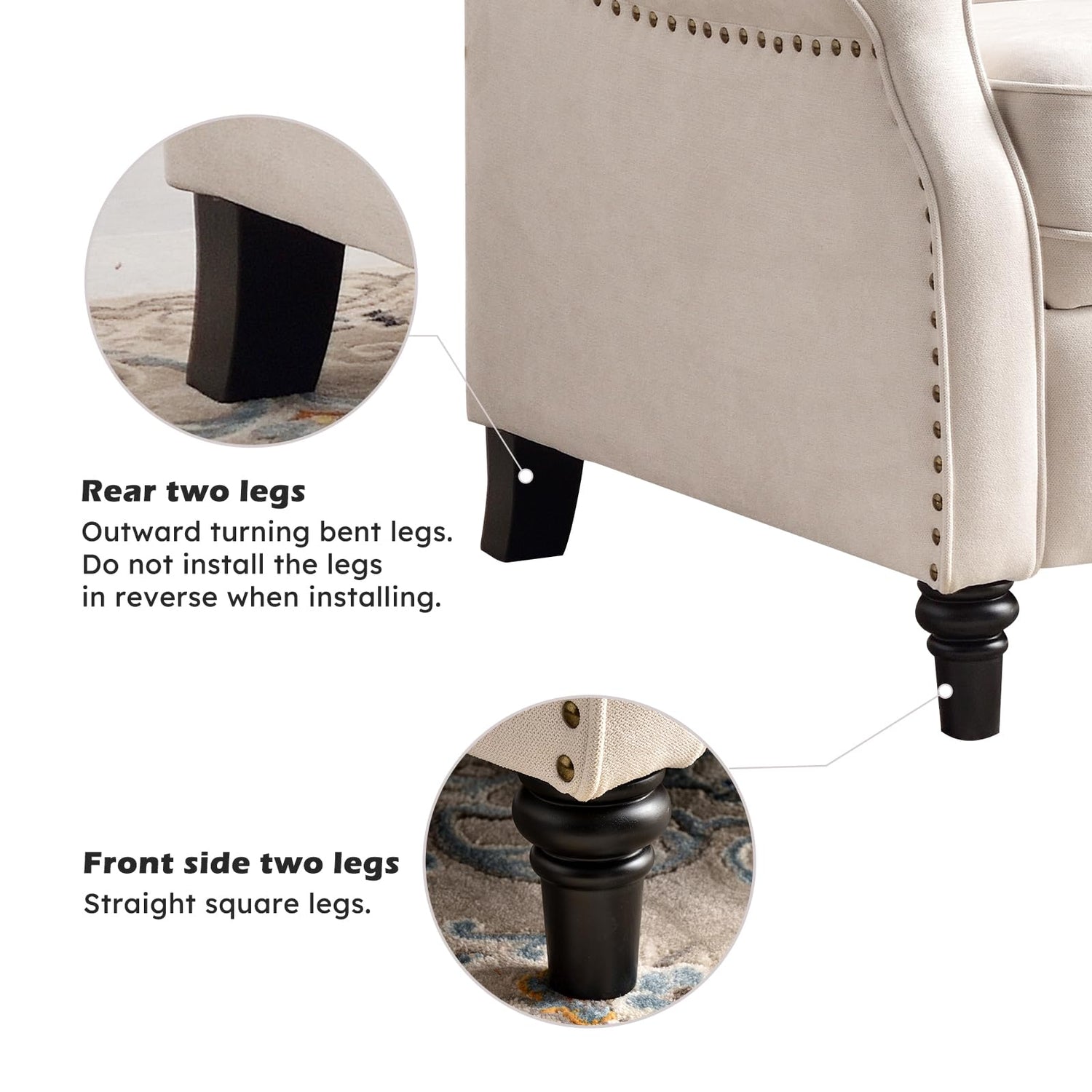 - Durable & Stable Construction: Built with a solid metal and wooden frame, this recliner is designed for long-term use. The four sturdy wooden legs, complemented by the rivet design, can support up to 350 lbs, ensuring safety and stability.