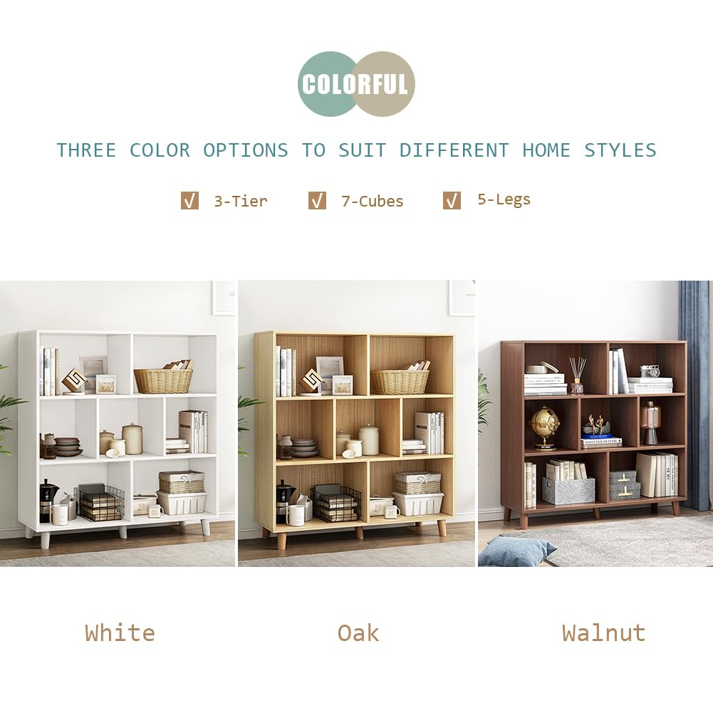 IOTXY Open Cube Low Bookcase - 3-Tier Freestanding Storage Display Cabinet Organizer with Legs for Home Office, 7-Cubes Open Shelf Short Bookshelf, White