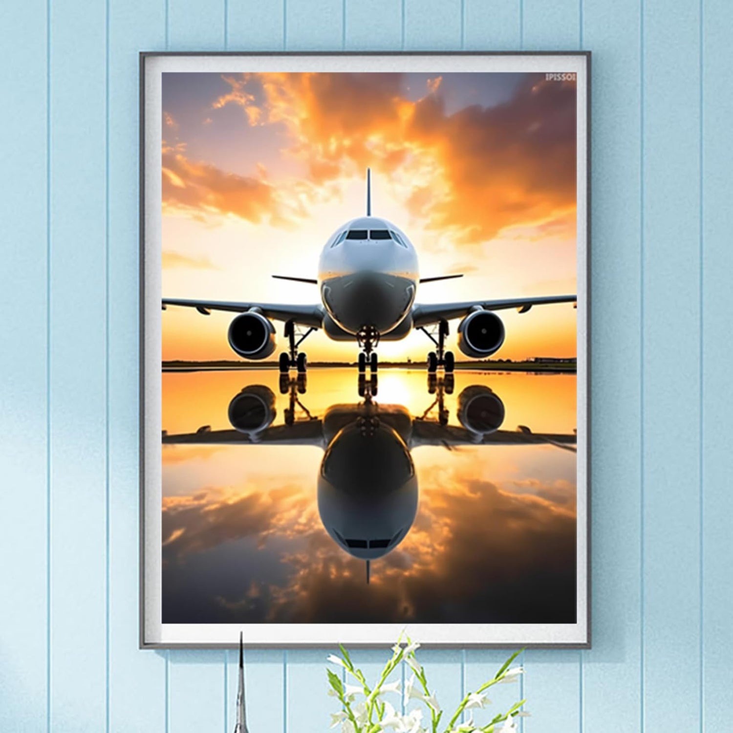 IPISSOI Diamond Art Painting Kits for Adults Airplane Landing at A Airport Round 5D Paint with Diamonds Airplane Pictures Gem Art Painting Kits DIY Crafts 12x16 inch