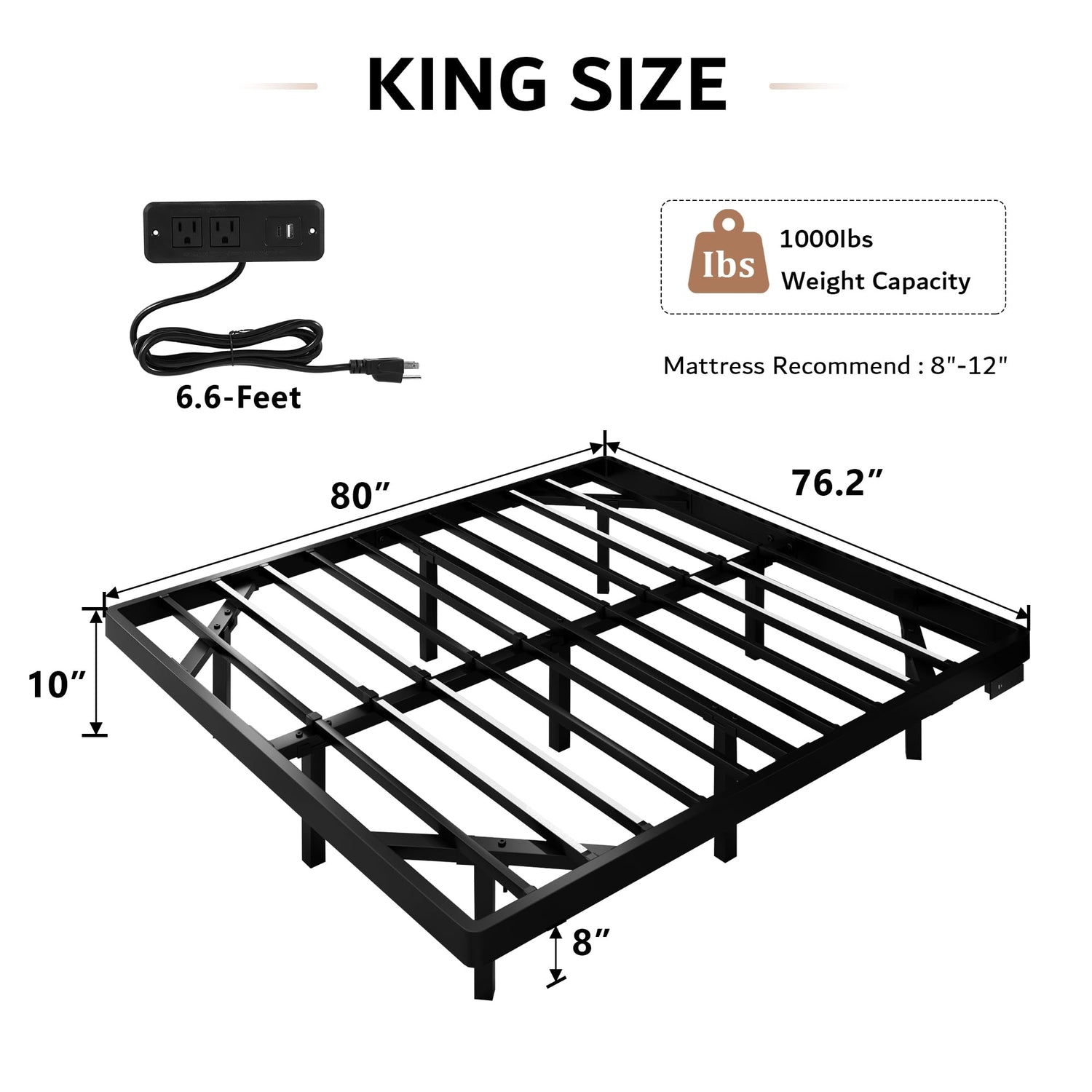 iPormis Modern King Size Floating Bed Frame with LED Lighting & Charging Station, Durable Metal Platform Design