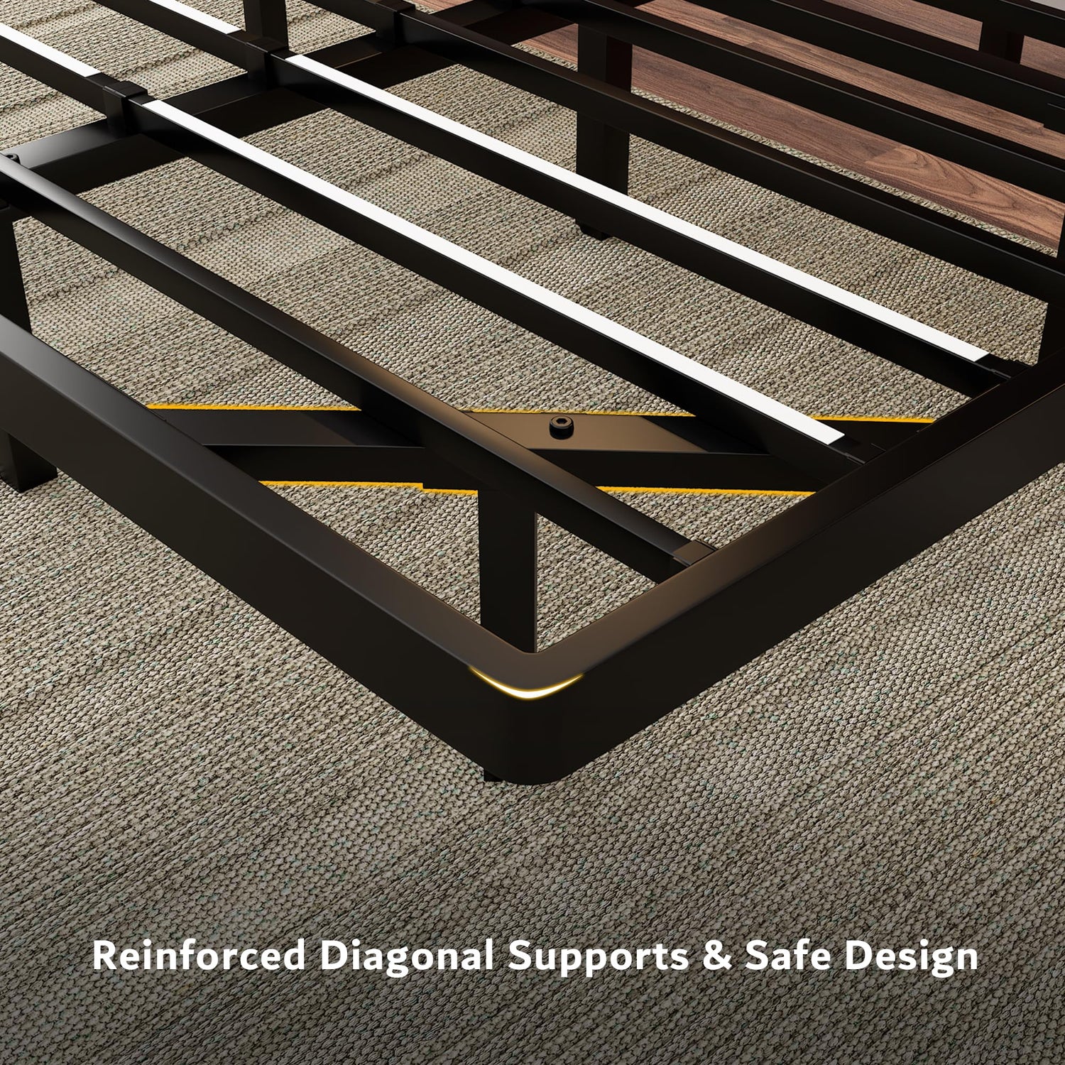 Crafted with a focus on durability and stability, this metal platform bed frame supports up to 1000 pounds thanks to its 11 reliable slats and 9 sturdy legs designed in a triangular structure. This ensures that you enjoy a restful sleep without any compromise in strength or support.