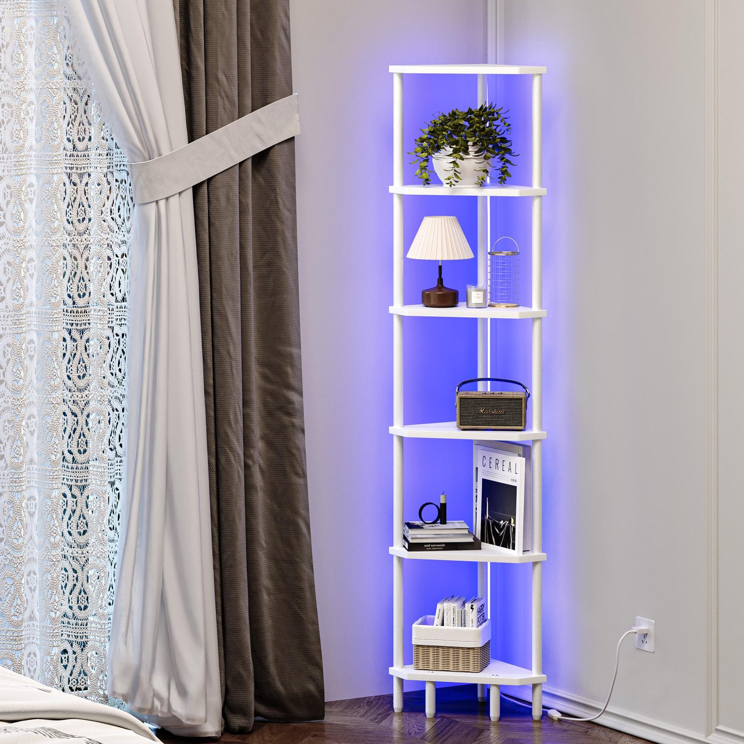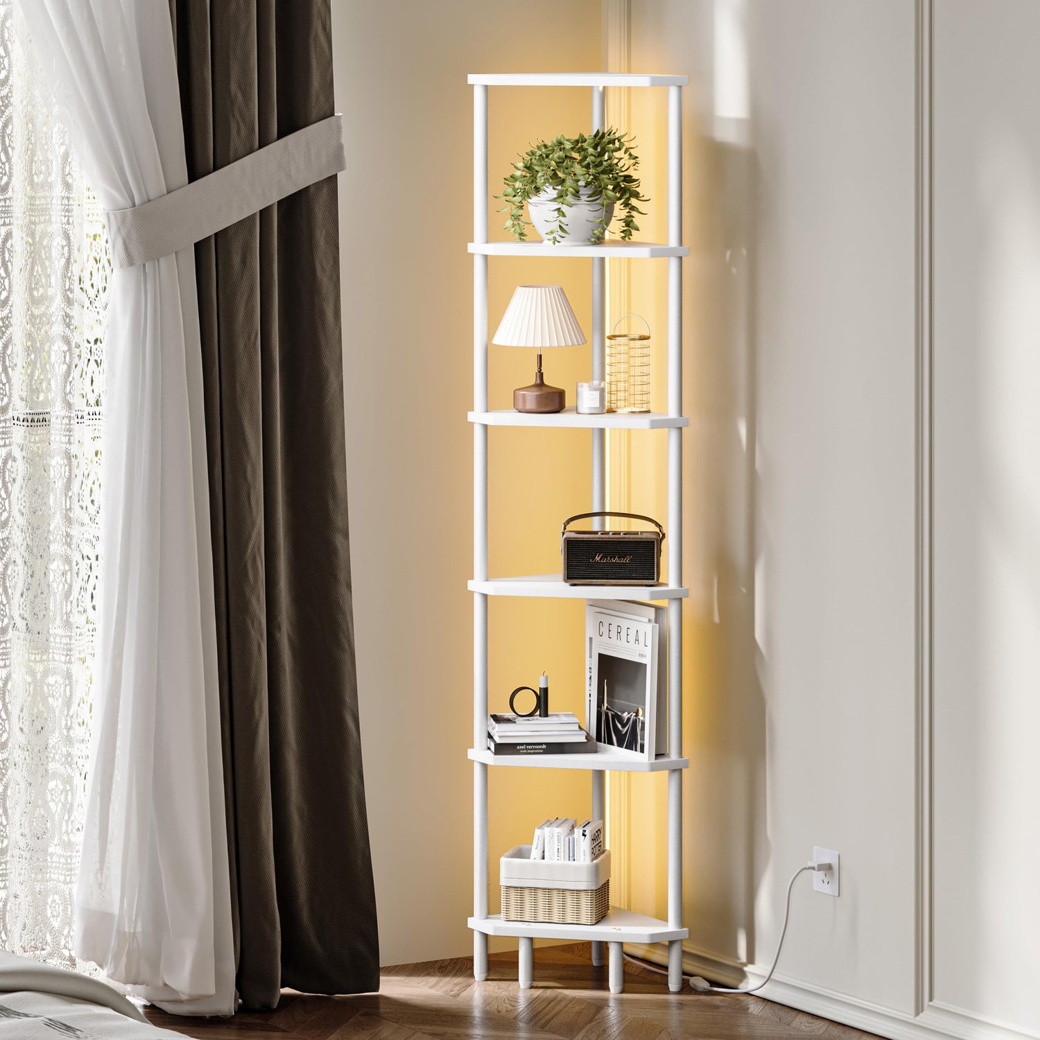 IRCPEN 6 Tier Corner Shelf with LED Light, 66.5'' Tall Standing Shelf, Narrow Display Shelf Stand, Modern Corner Bookshelf, Plant Stand, Corner Bookcase for Living Room, Bedroom, Small Space LCS502WE