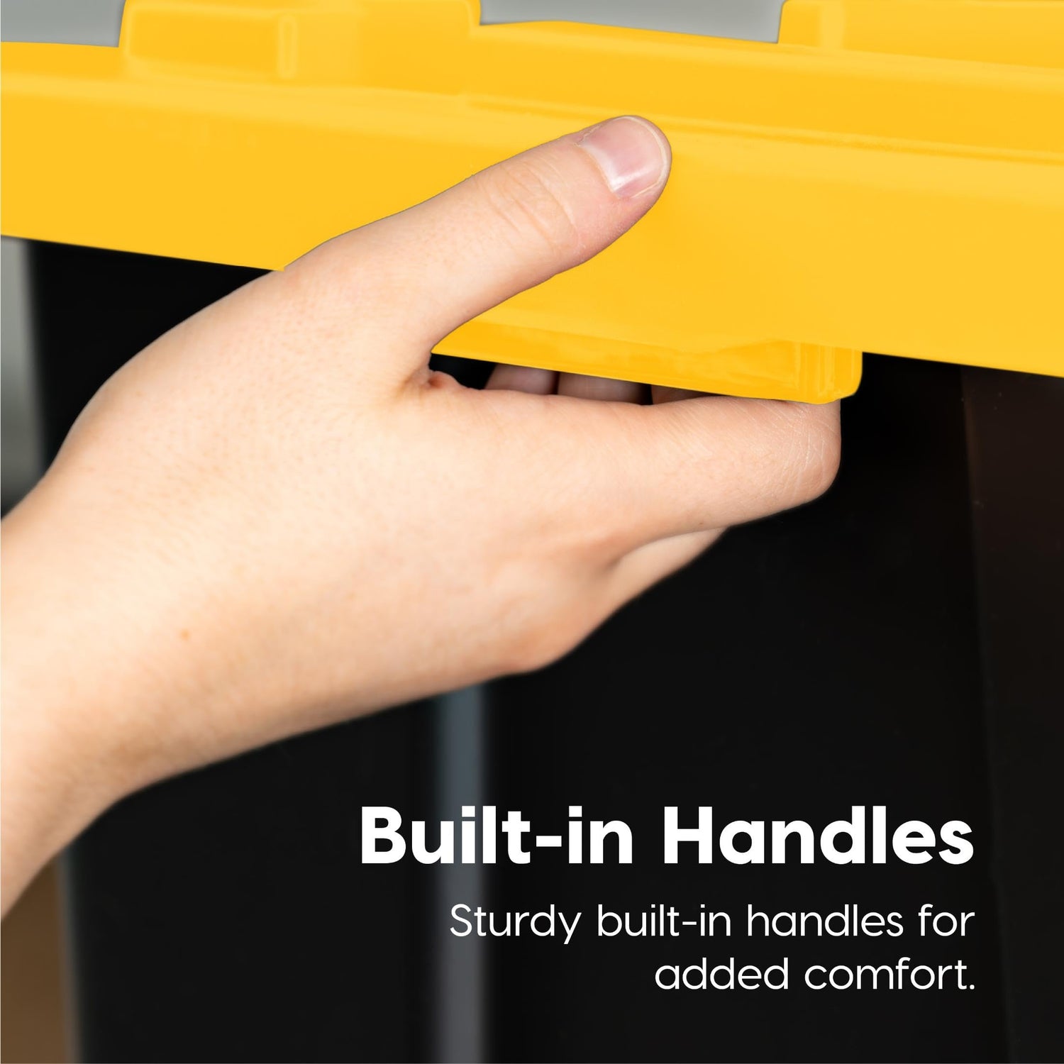 IRIS USA 12 Gallon Heavy Duty Truck Bed Toolbox Storage Tote Bins with Lids, 4 Pack - Made in USA, Tough Snap On Lockable Lid Stackable Industrial Rugged Tubs, Garage Organization Box - Black/Yellow