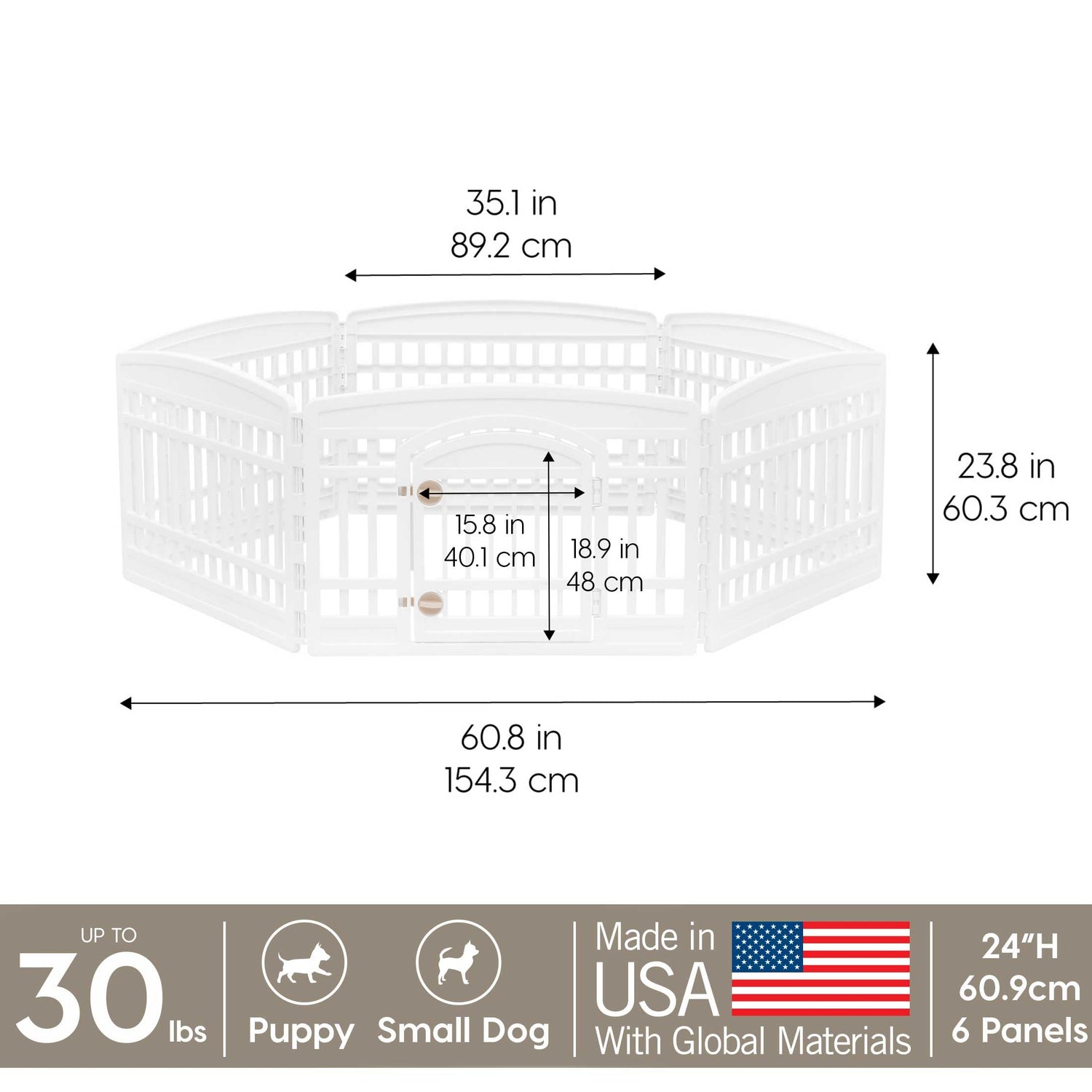 IRIS USA 24" 6-Panel Pet Playpen with Door, Dog Playpen For Puppy Small Dogs Keep Pets Secure Easy Assemble Easy Storing Customizable Non-Skid Rubber Feet, White