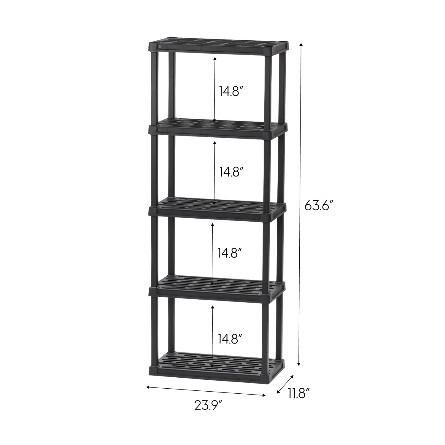 IRIS USA 5-Tier Heavy Duty Plastic Shelving Unit, 64" Tall - 40lbs per Shelf, Modular Garage Rack Storage Organizer for Home, Basement, Laundry & Utility Room, 12"D x 24"W x 64"H - Black