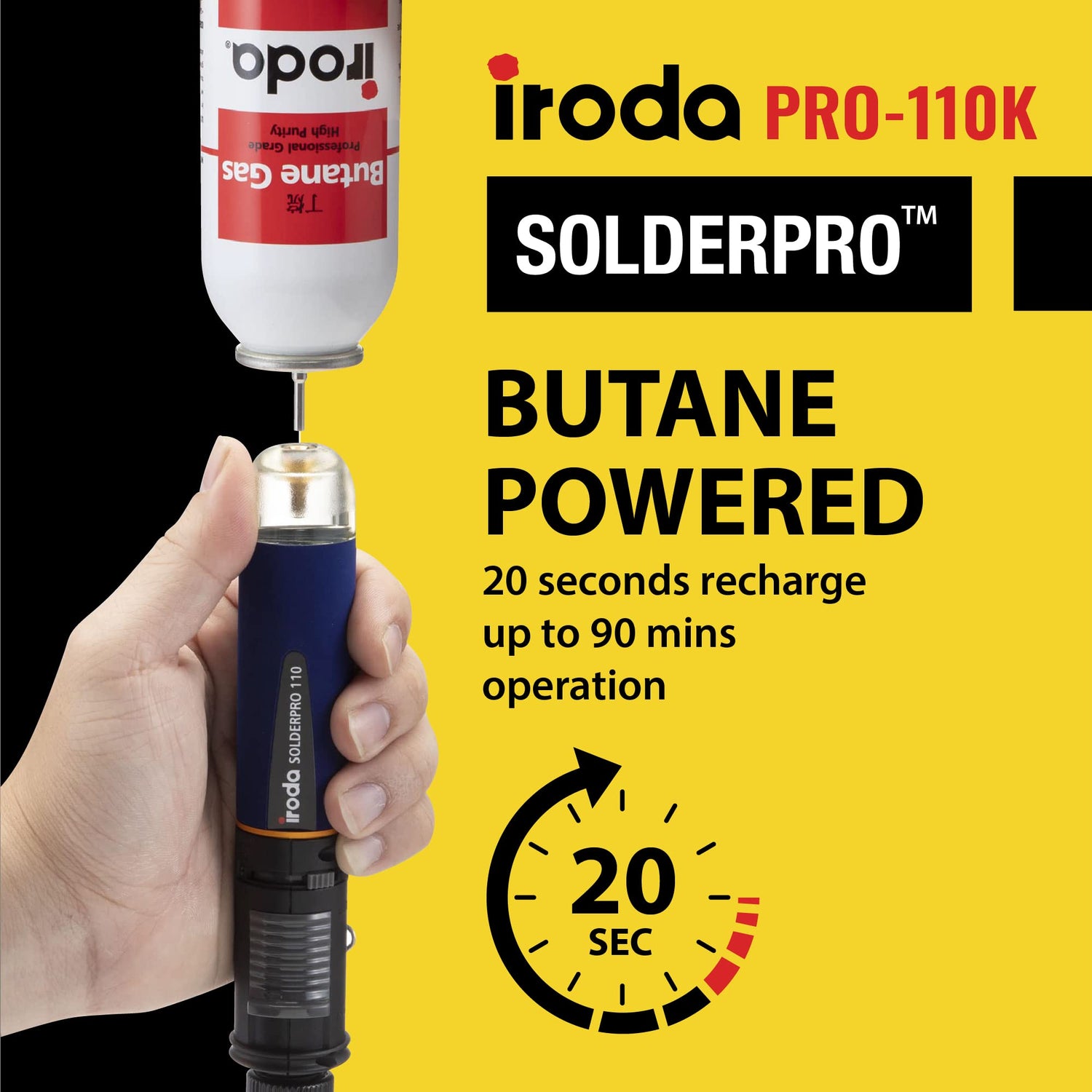 IRODA SOLDERPRO 110K Cordless Butane Soldering Iron Kit - 4-in-1 Portable Soldering Iron, Mini Torch, Heat Gun, Precision Heat Blower, 30-125W Adjustable, 100+ Min Runtime