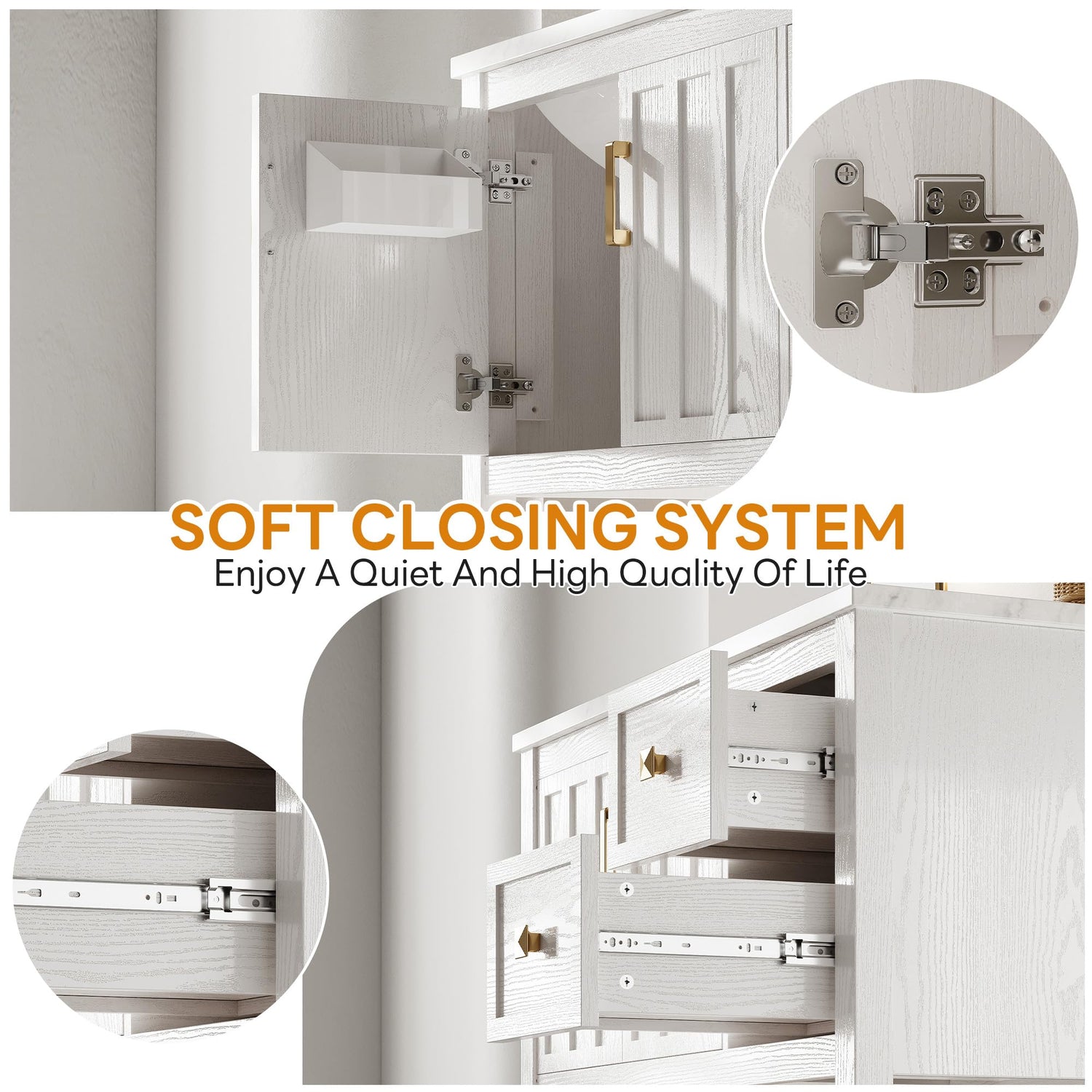 - Durable & Sturdy Construction: Crafted from high-quality materials, this bathroom vanity ensures long-lasting durability. The soft-close cabinet doors and drawers provide smooth and quiet operation for added convenience.