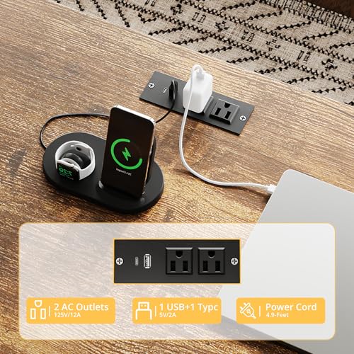 - Integrated Charging Station: This modern office desk features an integrated charging station. It includes 2 outlets, 1 USB port, and 1 Type-C port. The convenient design keeps devices powered within reach. This computer desk helps maintain a tidy workspace.