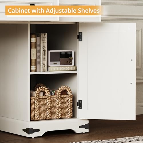 - Charming Farmhouse Design: This white farmhouse desk brings rustic charm to any space. Measuring 55 inches, it fits perfectly in home offices or bedrooms. The wooden construction ensures durability while maintaining elegant aesthetics. Its versatile design makes it ideal for work, study, or creative projects.