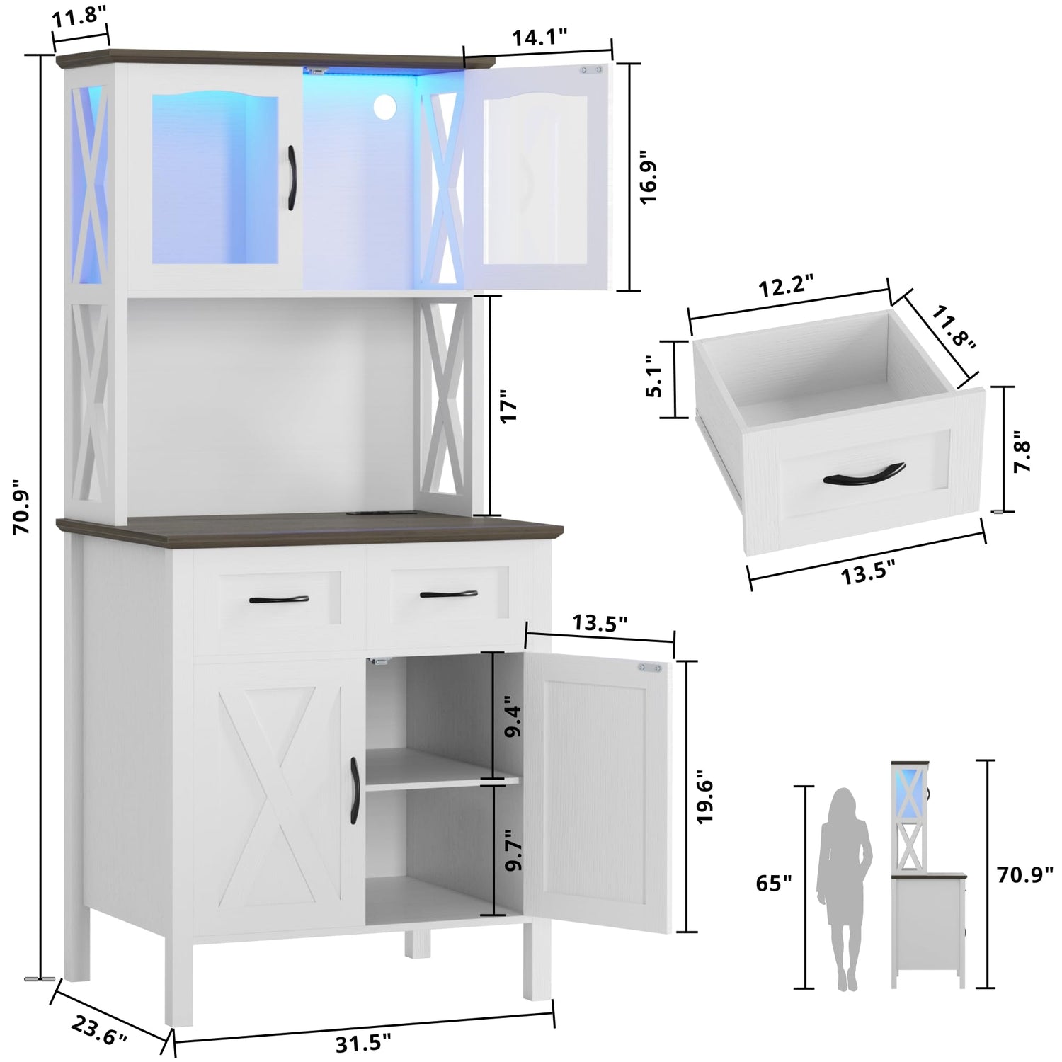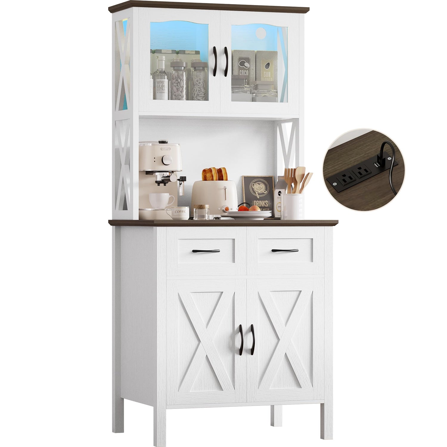 - Sturdy Construction: The kitchen hutch is made of high quality engineered wood for sturdy construction. At 23.6 inches wide, our cabinets are much wider than regular cabinets and can accommodate large appliances such as rice cookers. Additionally, the cabinets come with an anti-tip kit for added stability to ensure that they won't tip over