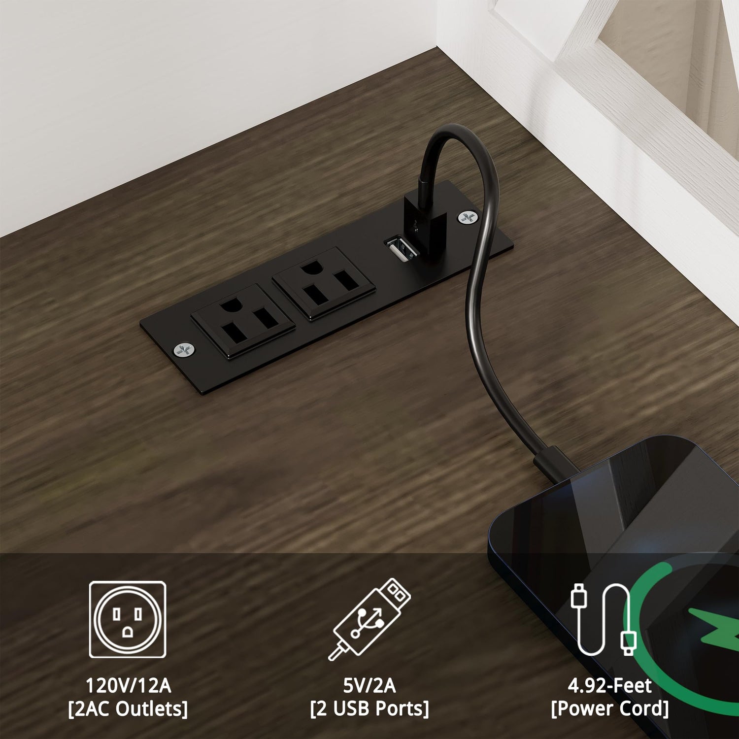 - Charging Station and RGB LED Lights: The countertop has a built-in outlet with 2 AC plugs and 2 USB ports for kitchen appliances such as microwave and coffee maker. The glass cabinet door is equipped with an adjustable LED strip with multi-color changing modes, light modes, and timer function to provide you with a better atmosphere in the room