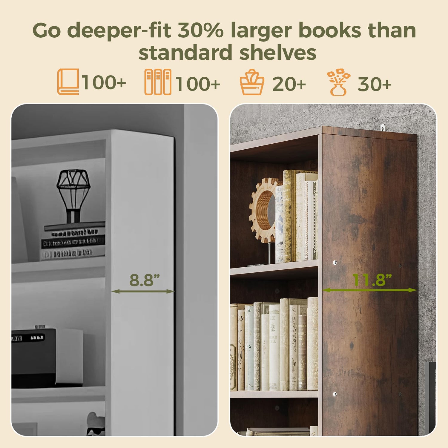 - Ample Depth: The 11.9-inch deep bookcase with doors allows you to place normal-sized books without any trouble.