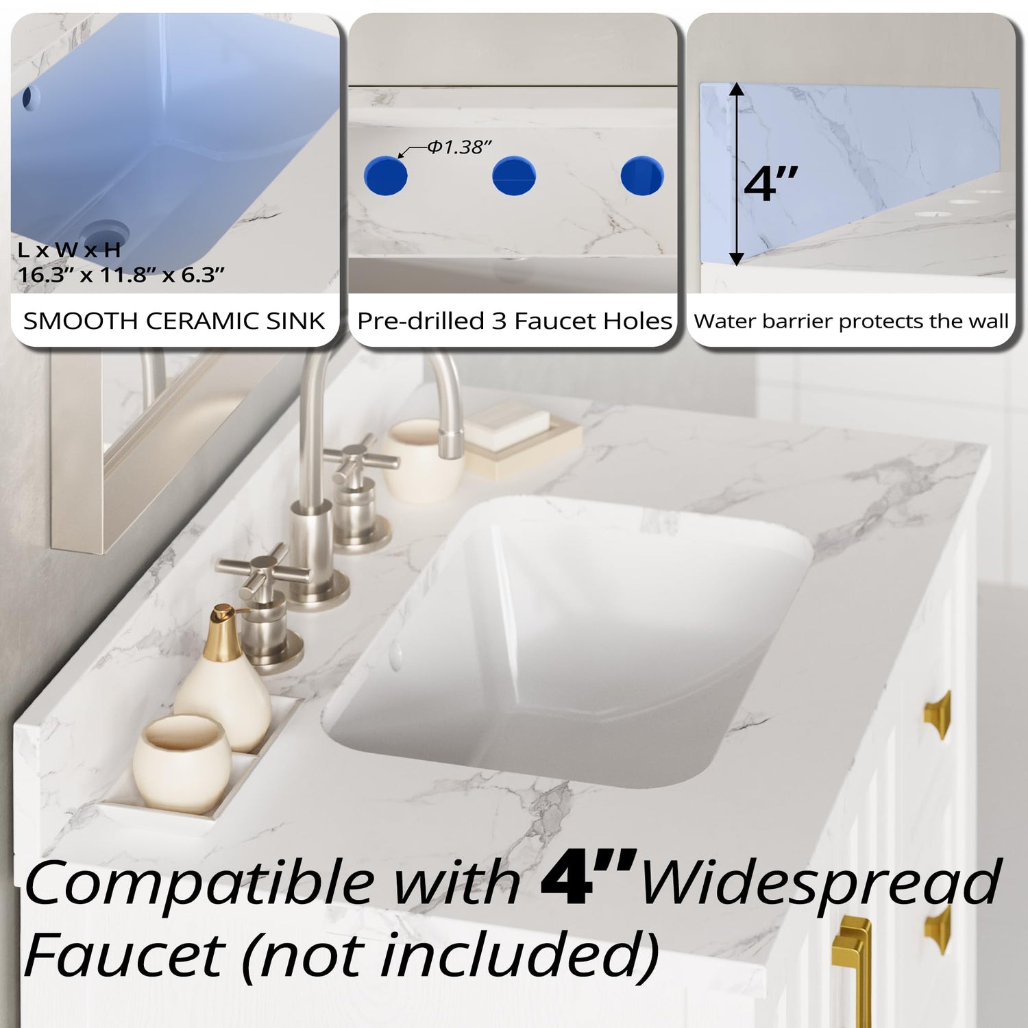- MODERN BATHROOM CABINET: Contemporary silhouettes, gold details, and clean lines allow this bathroom vanity to brighten up your bathroom space
