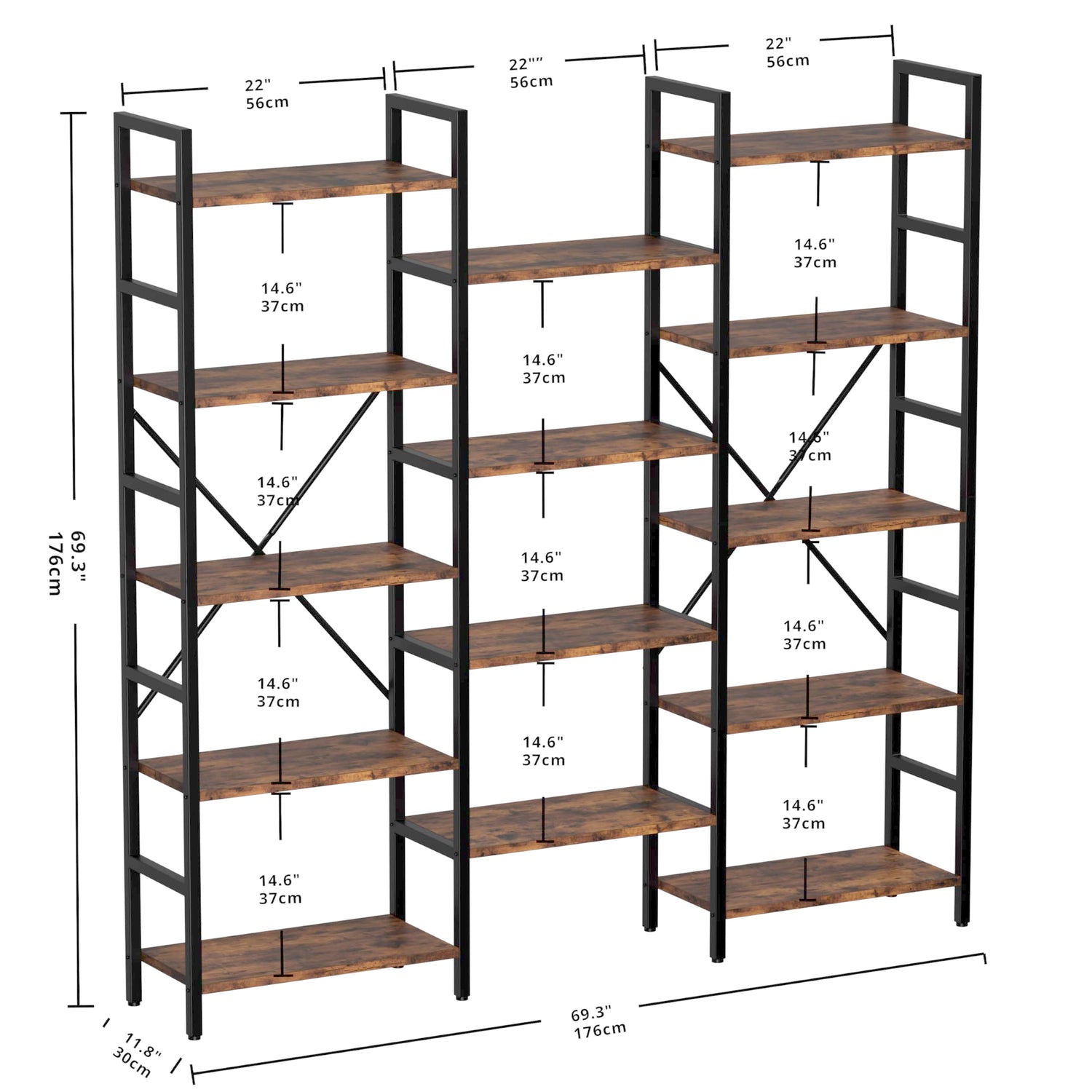 IRONCK Bookcases and Bookshelves Triple Wide 5 Tiers Industrial Bookshelf, Large Etagere Bookshelf Open Display Shelves with Metal Frame for Living Room Bedroom Home Office