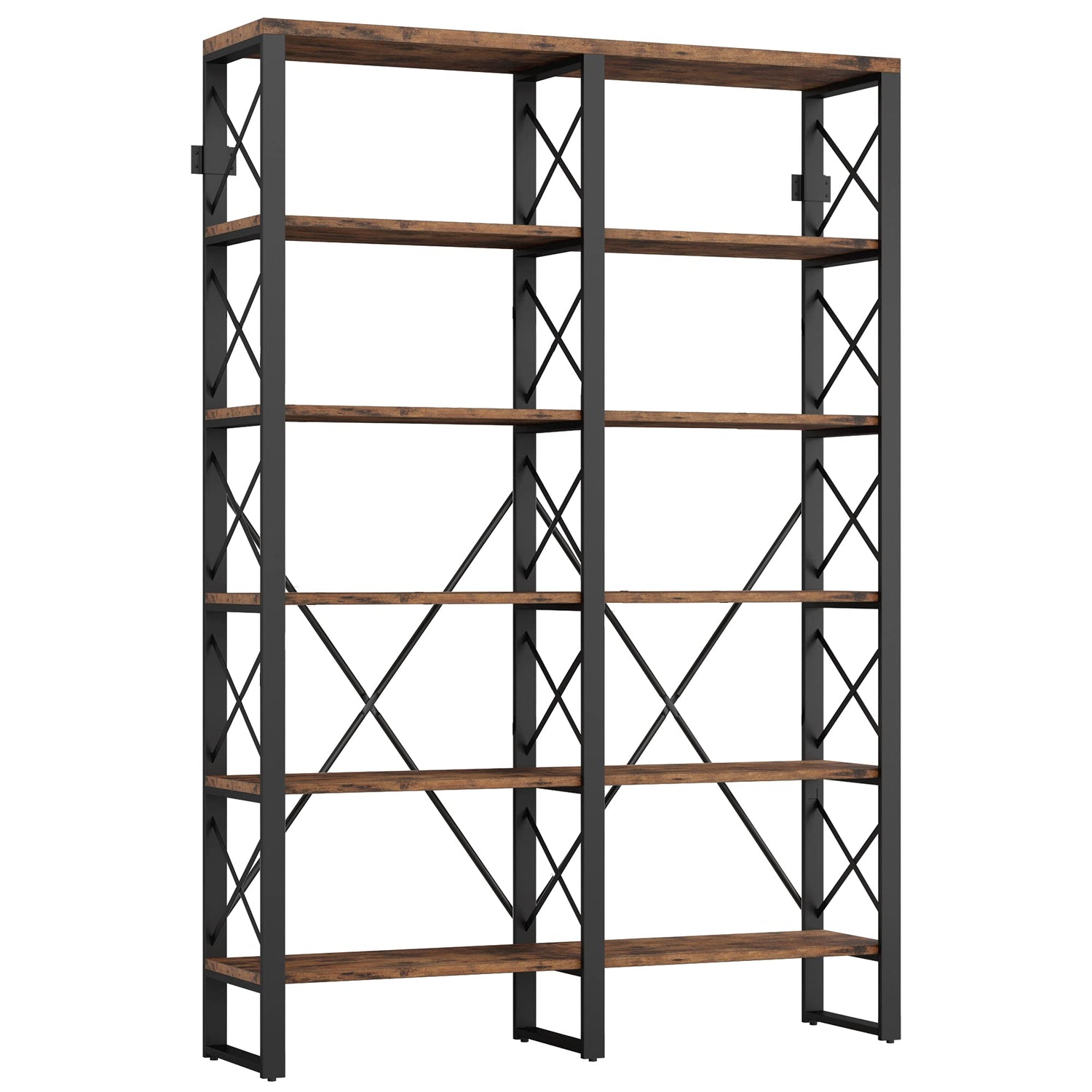 - Durable & Solid - This large bookshelf is made of a thicker metal frame and a P2 grade MDF board, which adds industrial-inspired style to your decor. The crossbar design at the back makes the bookshelf more stable and durable.