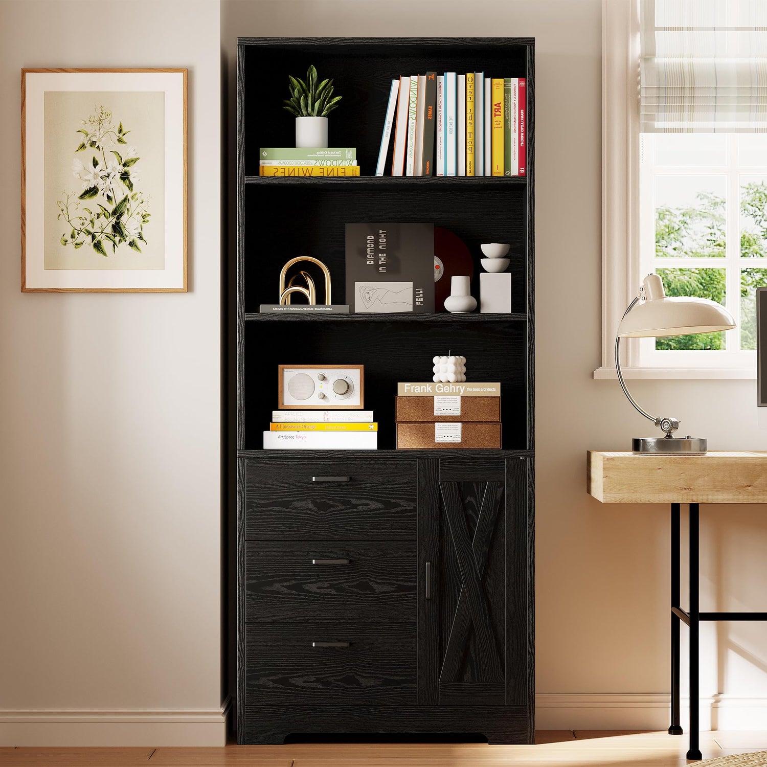 IRONCK Bookshelf with Door and 3 Drawers, 71in Tall Bookcase Shelf with 3-Tier Shelves, for Bedroom Living Room Entrance Hallway Home Office