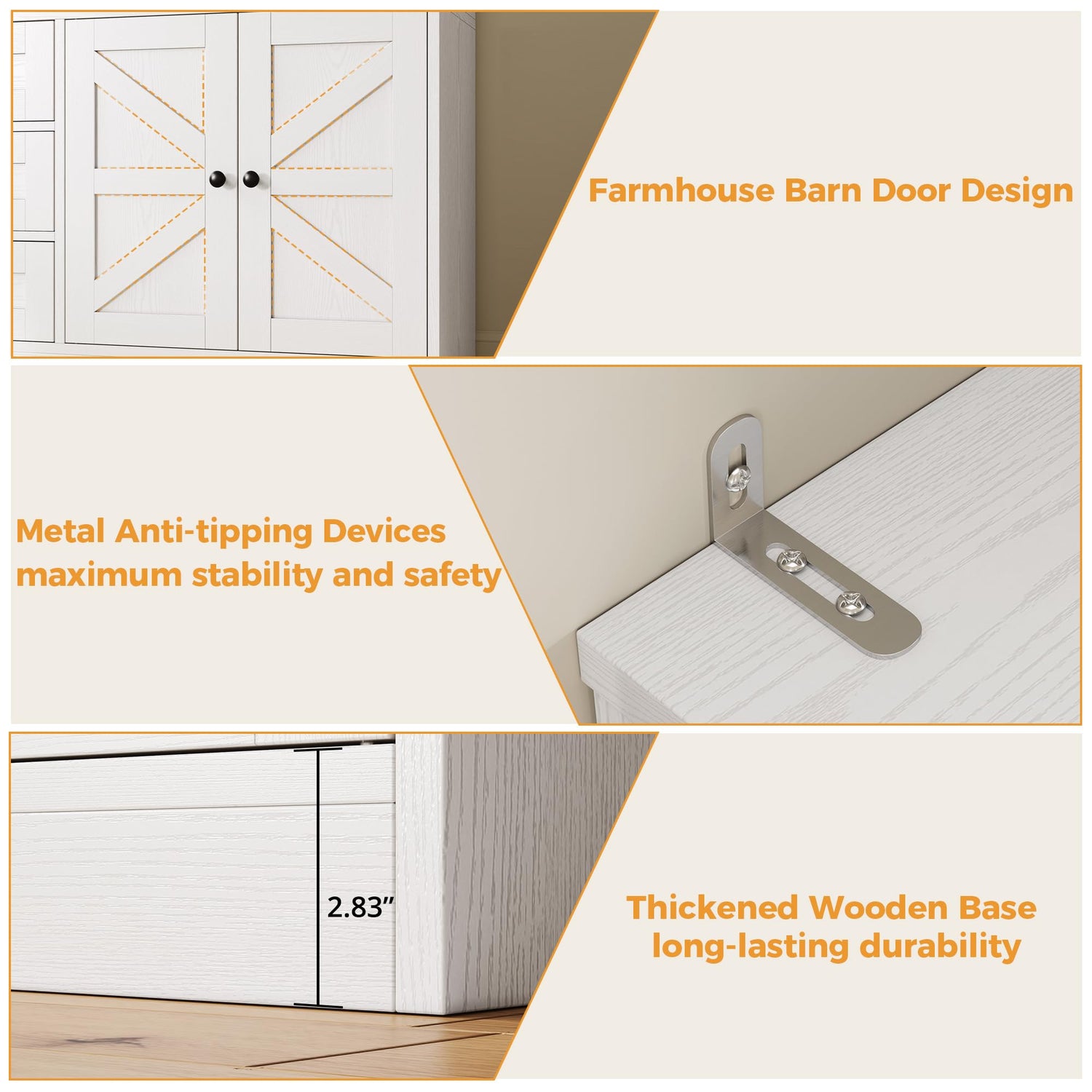 - Adjustable Shelf: The white bookshelf with farmhouse doors features customizable height settings, enabling you to easily adapt the space to store items of different sizes, providing a efficient storage solution.