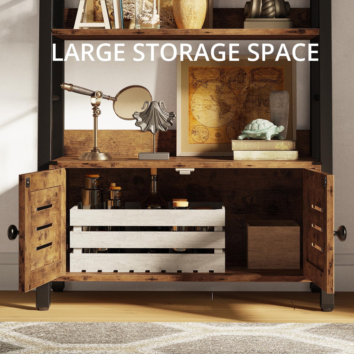 IRONCK Bookshelf with Louvered Doors, 3-Tier Ladder Shelf with Cabinet Industrial Accent Furniture for Bedroom Living Room Home Office, Rustic Brown