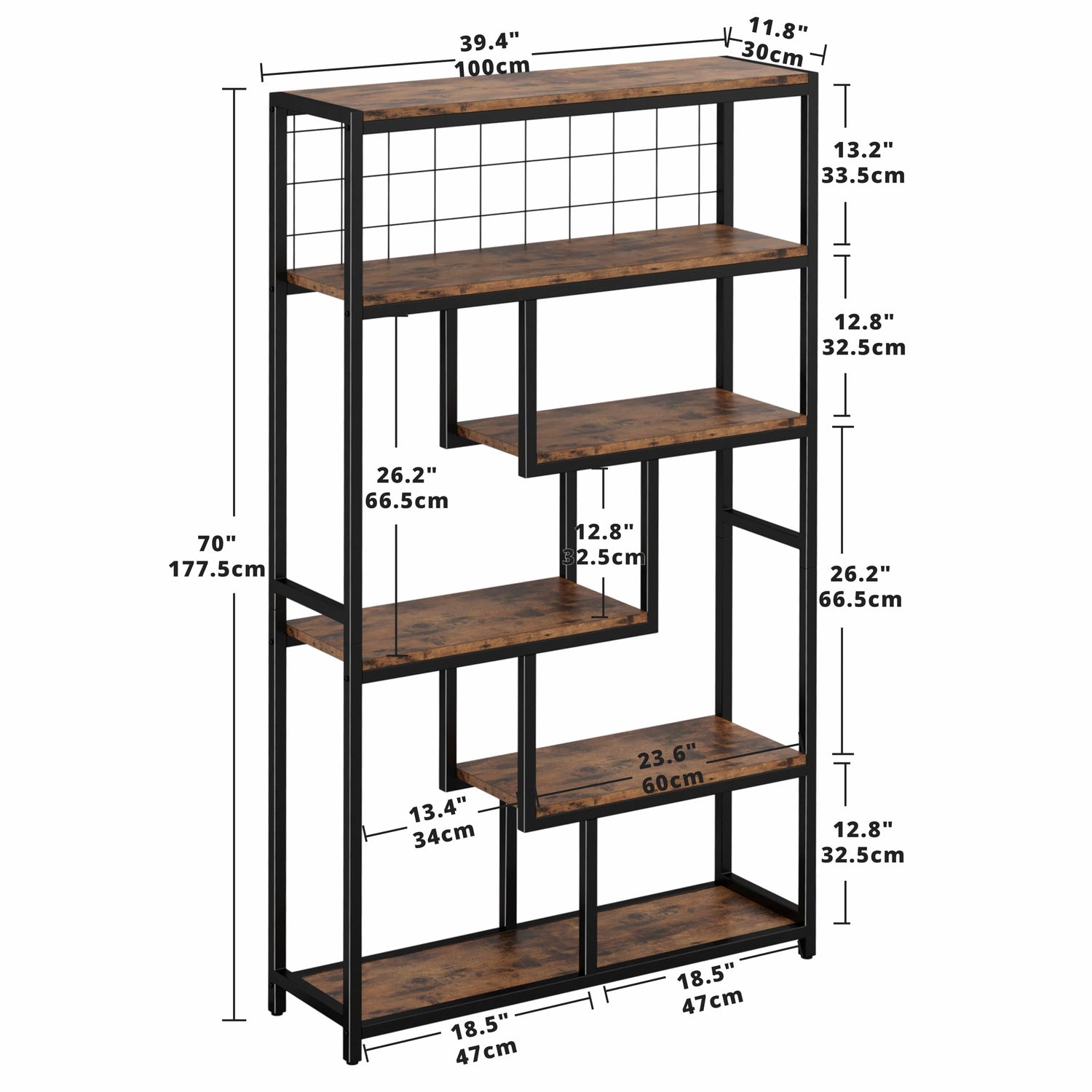 IRONCK Bookshelves 6 Tiers, Industrial Etagere Heavy Duty Shelves for Living Rooom, Office Storage Geomeric Display Boocase, Vintage Brown