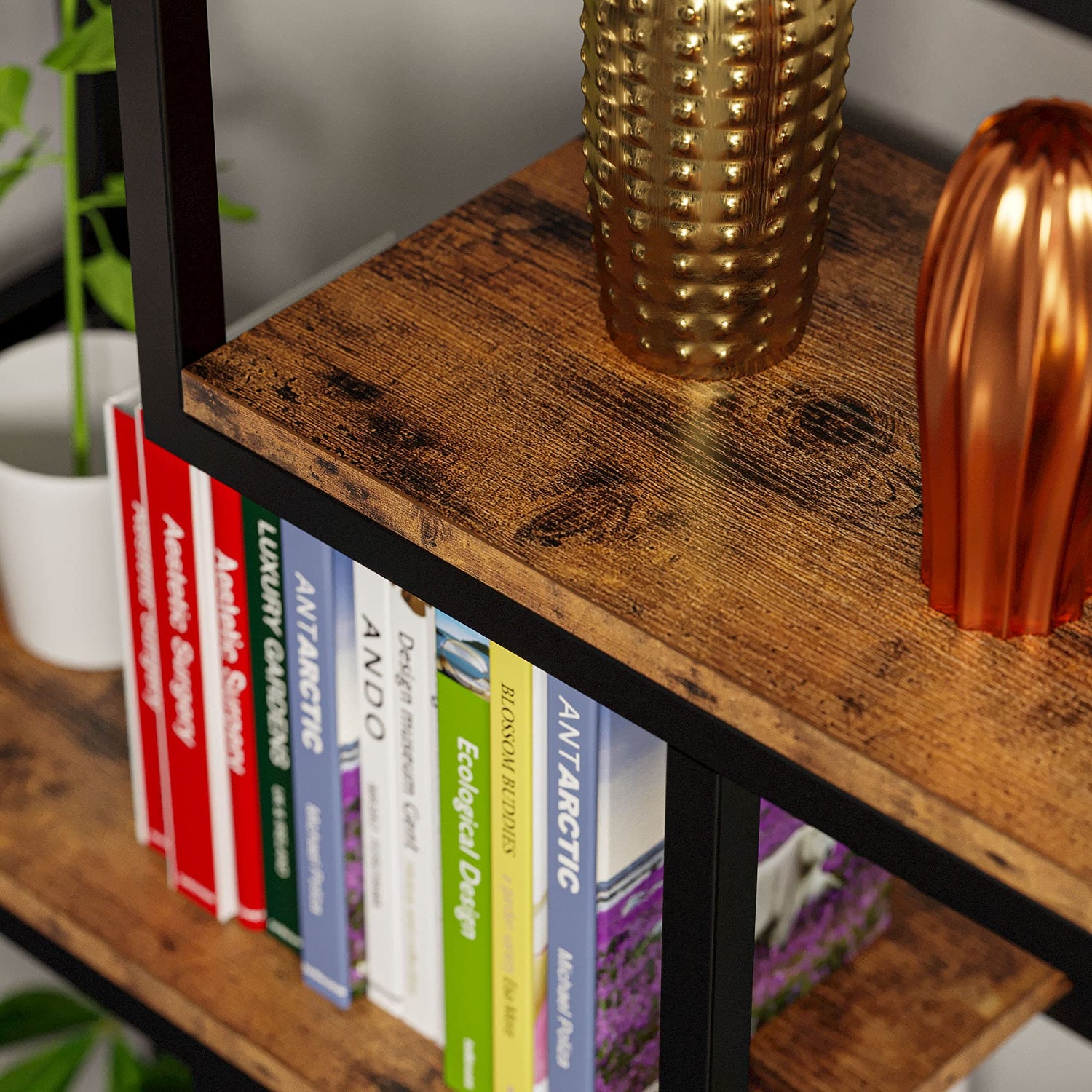 - Industrial design with high-quality MDF board shelves and sleek black steel frame