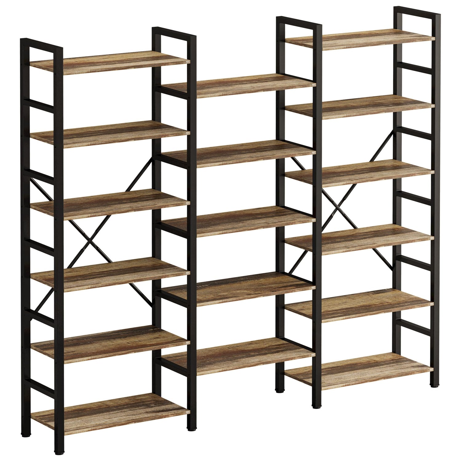 IRONCK Bookshelves 6 Tiers Triple Wide Industrial Bookshelf, Large Etagere Bookshelf Open Display Shelves with Metal Frame for Living Room Bedroom Home Office