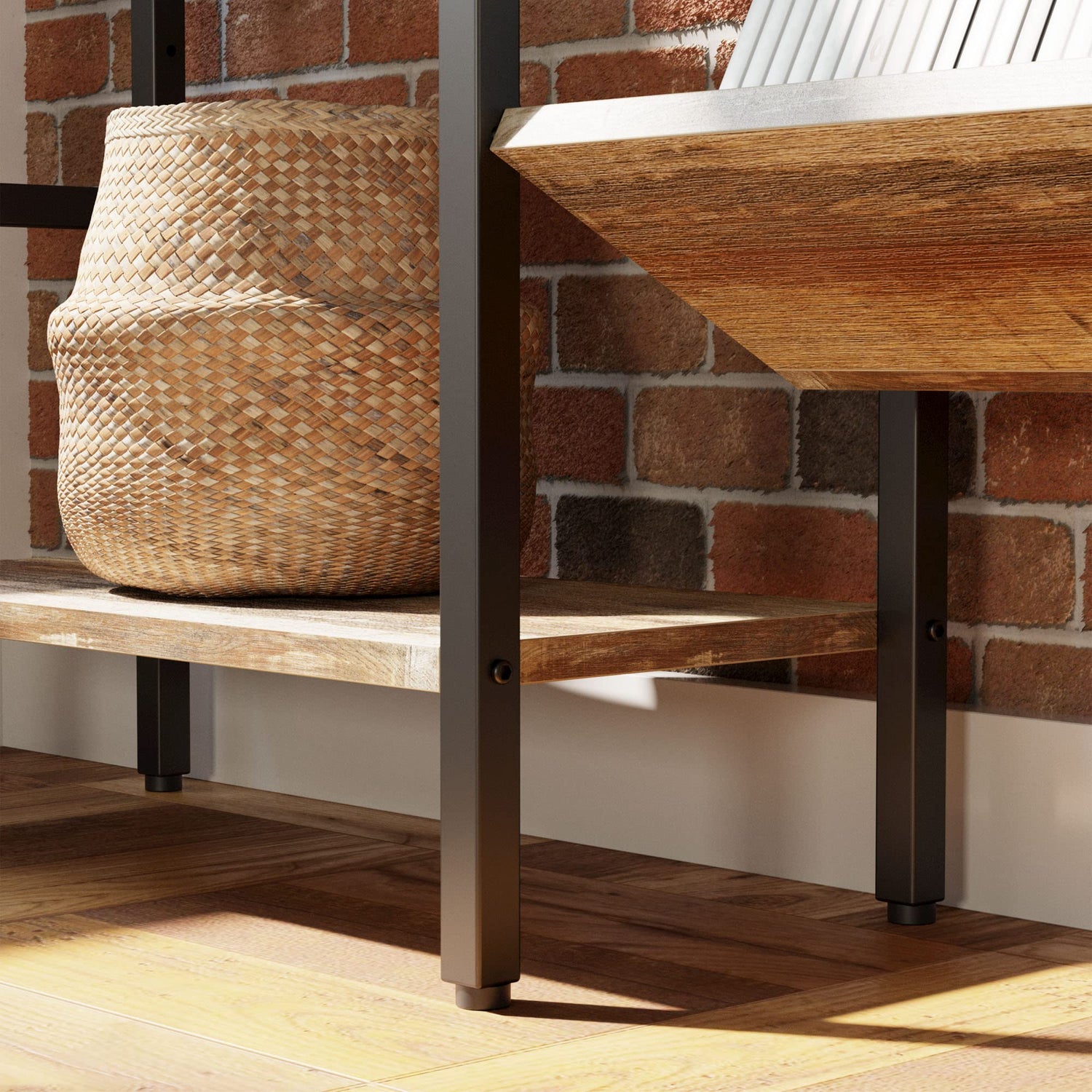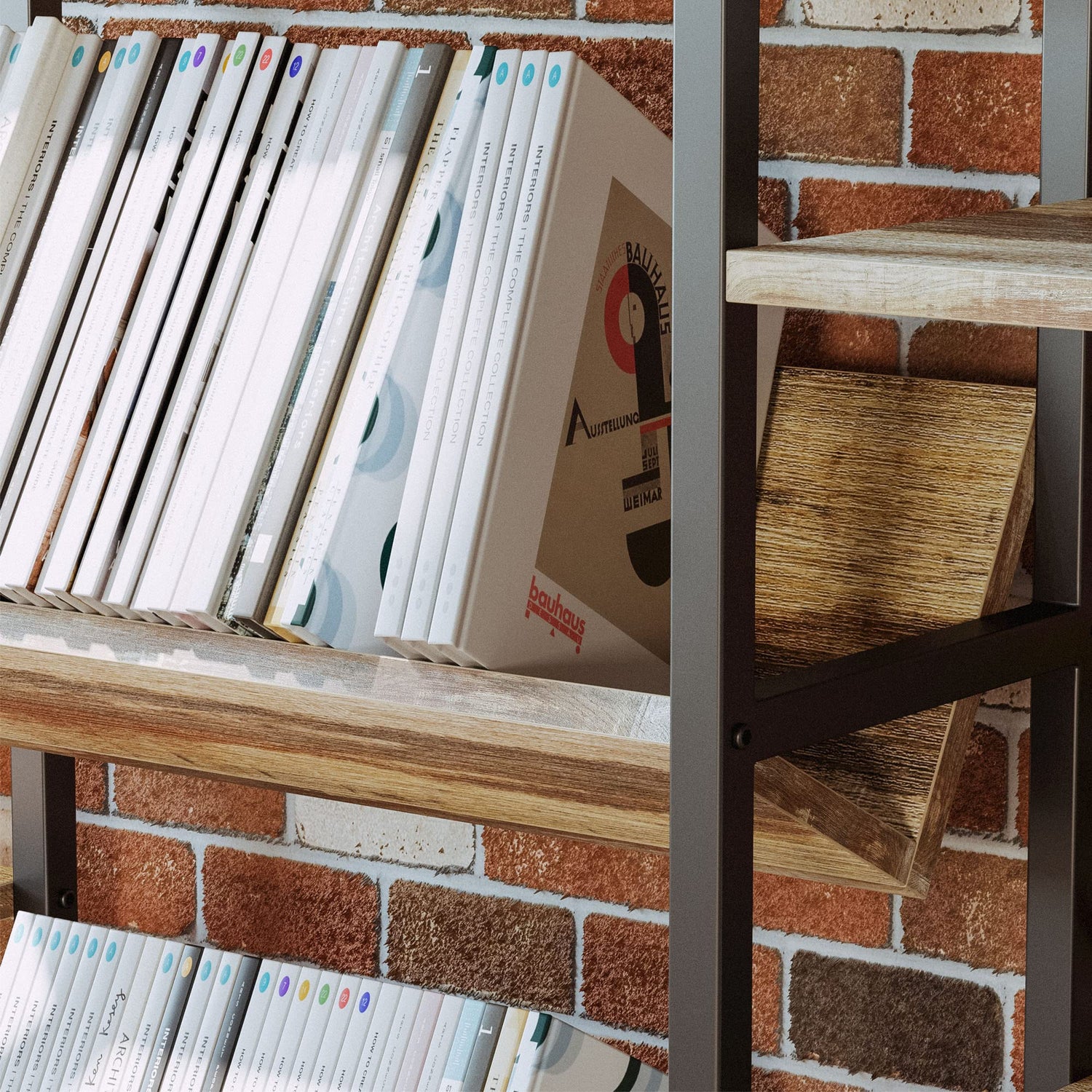 - Industrial Bookcase: Industrial bookcase made of solid MDF boards and stylish matte black iron brackets, the industrial color makes this bookcase well match your other furniture for your living room, bedroom, and office.